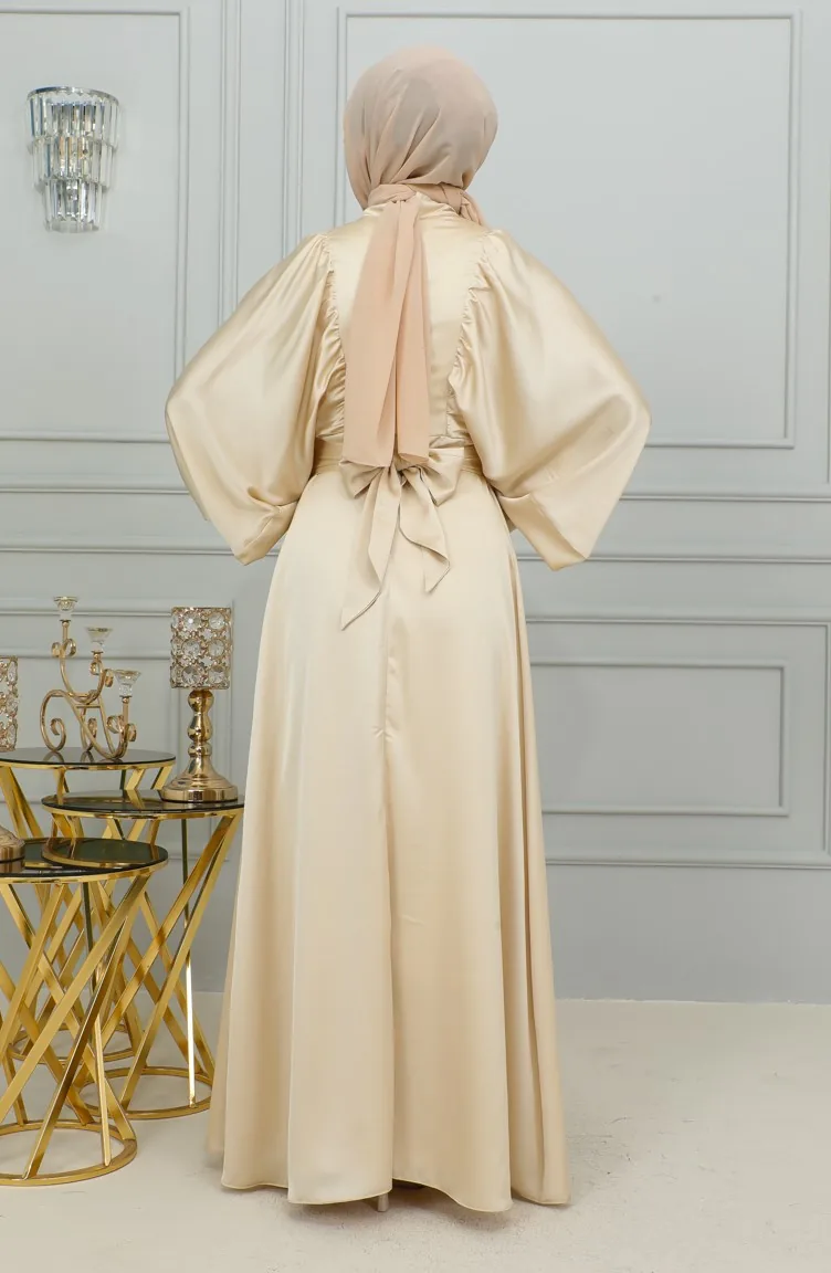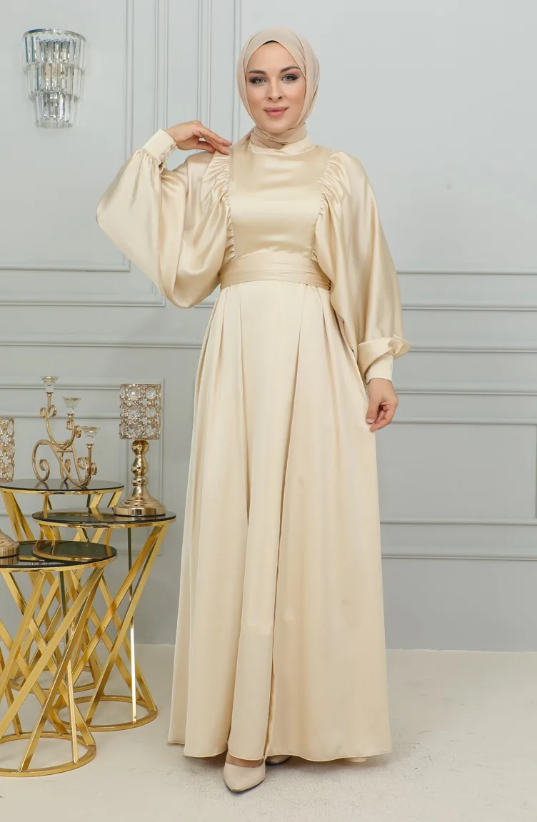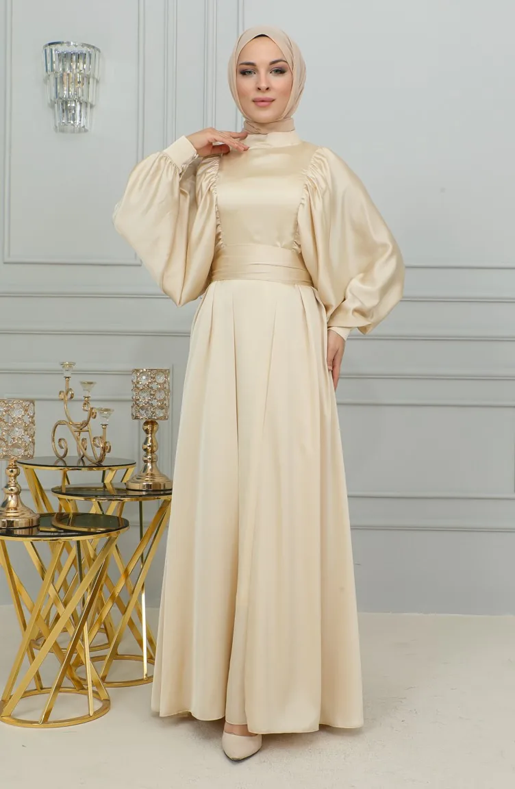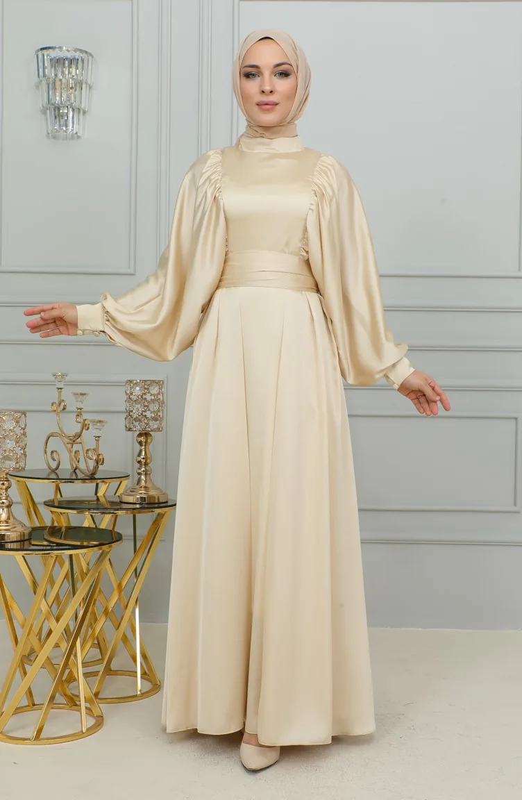 Balon Kol Saten Abiye Elbise 6176-04 Bal köpüğü