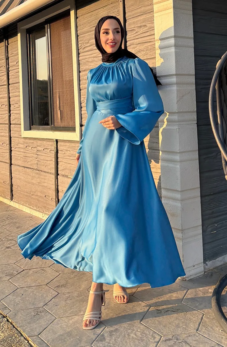 Özel davetlerin ve düğün organizasyonlarının vazgeçilmez parçası olan bu zümrüt yeşili saten abiye, modern tasarımıyla muhafazakar giyim tarzına yenilikçi bir soluk getiriyor. Zara saten kumaşın doğal parlaklığı ve yumuşak dokusu, gün boyu hem konforlu hissetmenizi sağlar hem de asil bir duruş sergiler. Ön kısmındaki büzgü detayı, bel hattını nazikçe vurgularken vücut hatlarını belli etmeyen zarif bir silüet oluşturur.Kumaş Özelliği: Birinci sınıf Zara saten kumaştan üretilmiştir.Tasarım Detayları: Önü büzgülü, uzun kollu ve hakim yaka detaylıdır.Kullanım Alanı: Düğün, nişan, söz ve mezuniyet törenleri için idealdir.Kalıp: Tam kalıp olup, dört mevsim kullanıma uygundur.Bu şık tasarımı altın rengi aksesuarlar ve dore tonlarında bir şal ile kombinleyerek zarafetinizi tamamlayabilirsiniz. Işığı yansıtan saten dokusu, akşam davetlerinde tüm gözlerin üzerinizde olmasını sağlayacaktır. Kumaşın nefes alan yapısı sayesinde en yoğun etkinliklerde bile rahatlığınızdan ödün vermezsiniz.