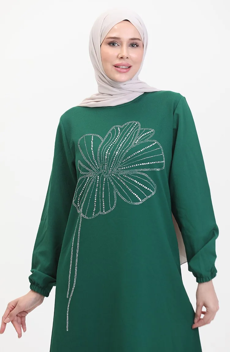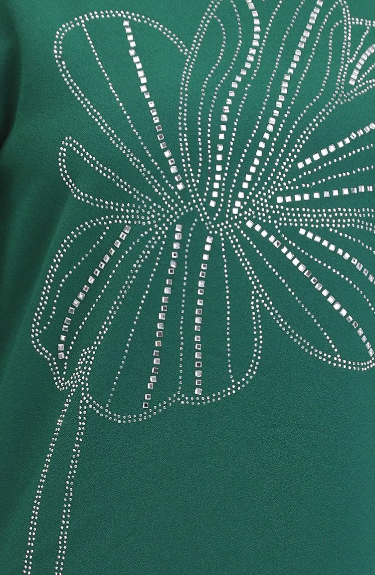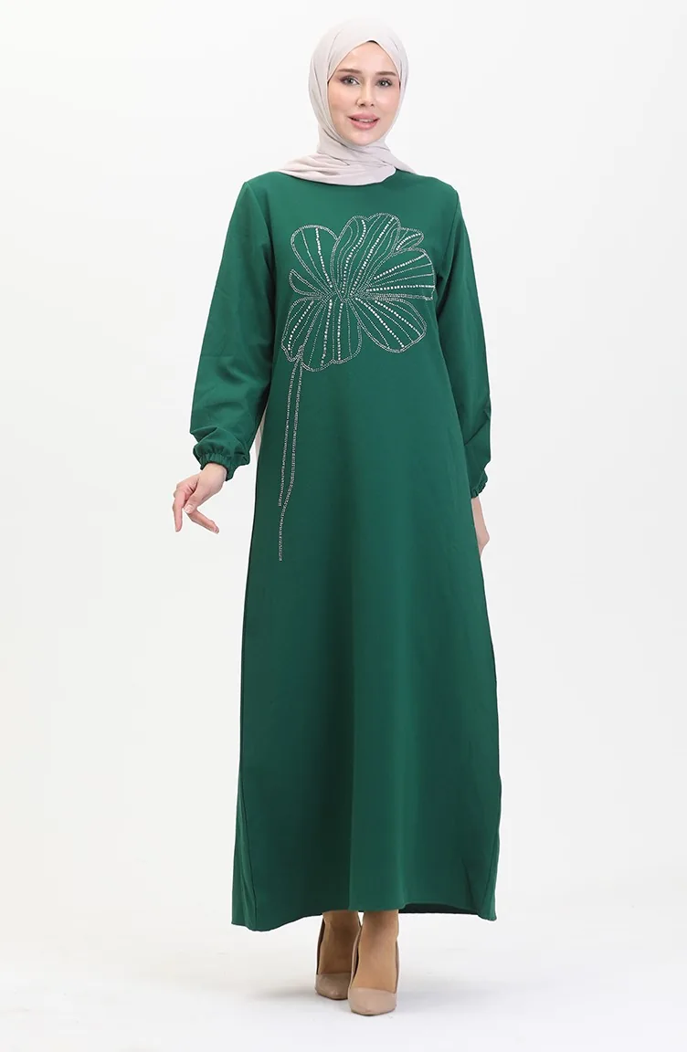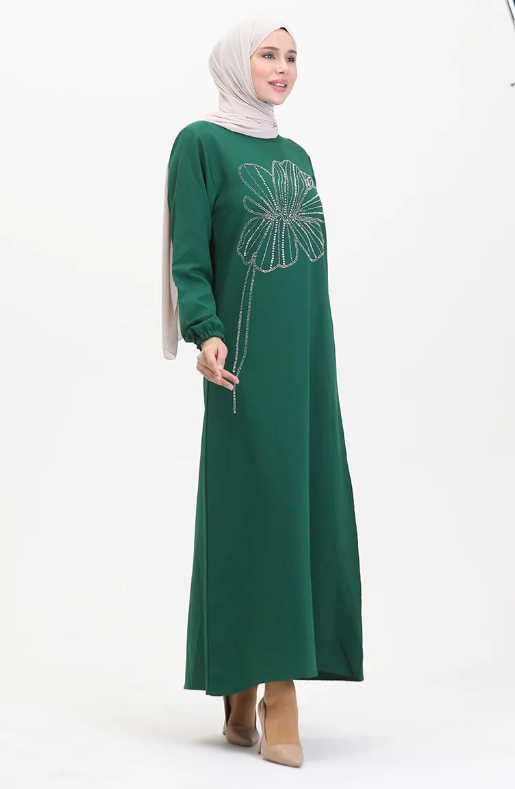 Taşlı Krep Abiye Elbise 0481-05 Zümrüt Yeşili