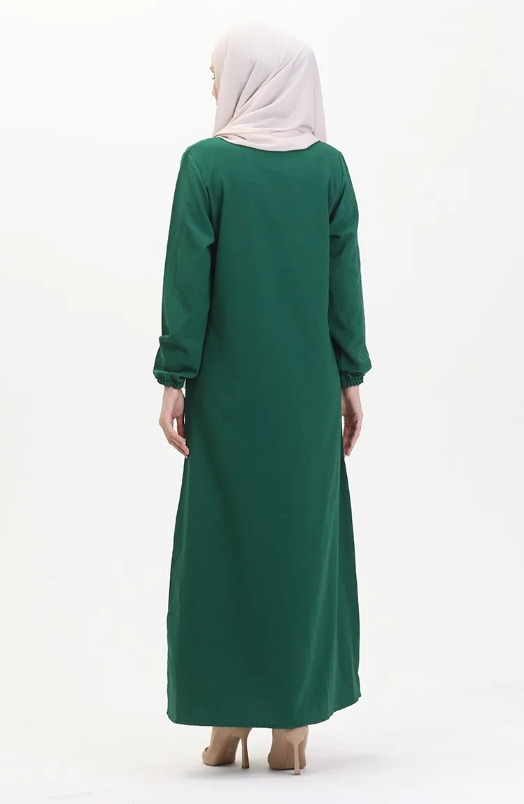 Zümrüt Yeşili renktedir. Krep kumaş. Sade. Astarsız. Lastik kollu. Sıfır yaka detayı ile rahat kullanıma sahiptir. 4 Mevsim tercih edebilirsiniz. Büyük beden seçeneği mevcuttur.