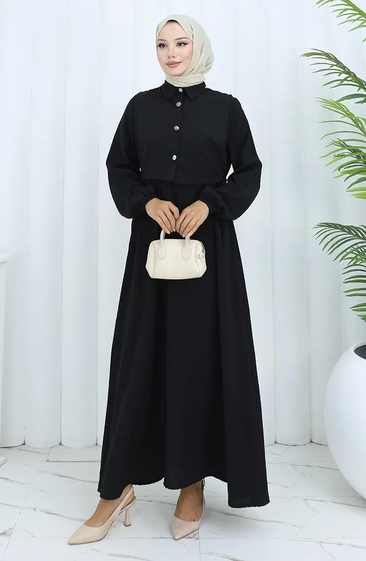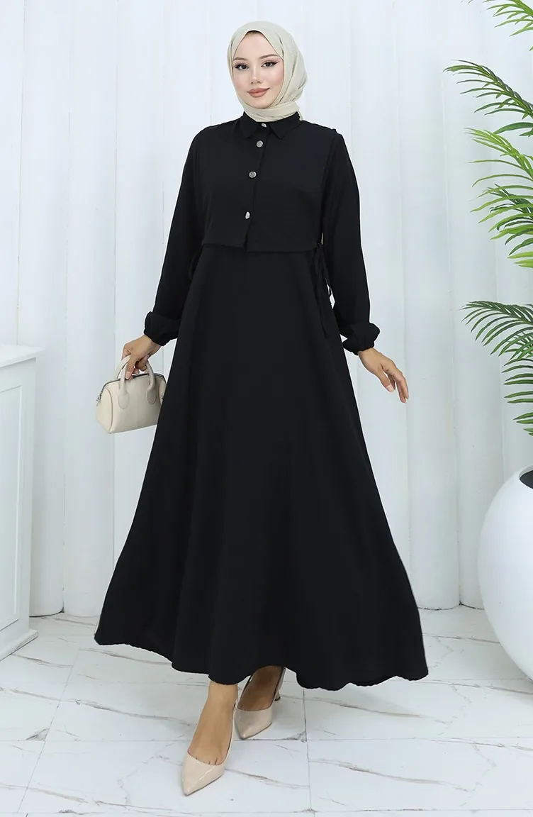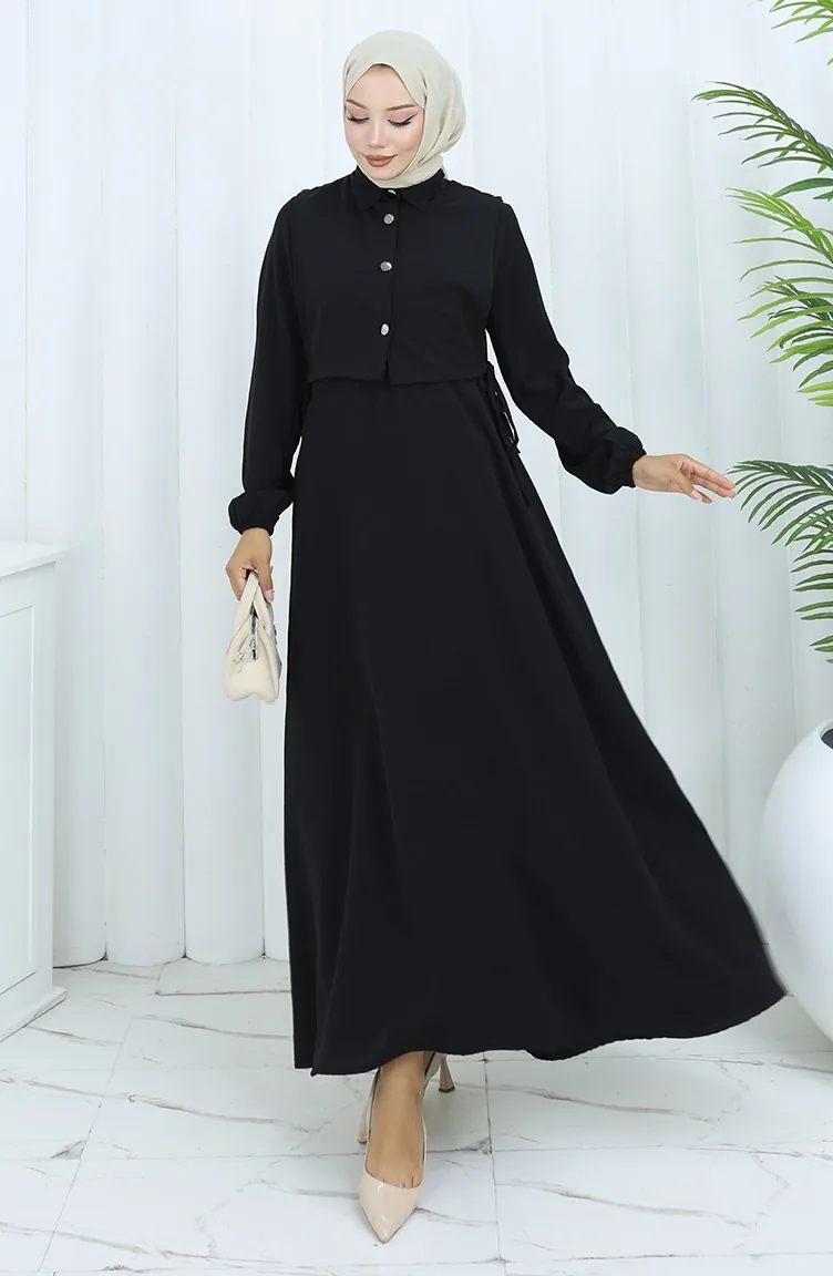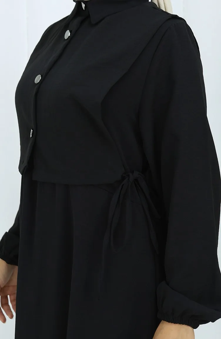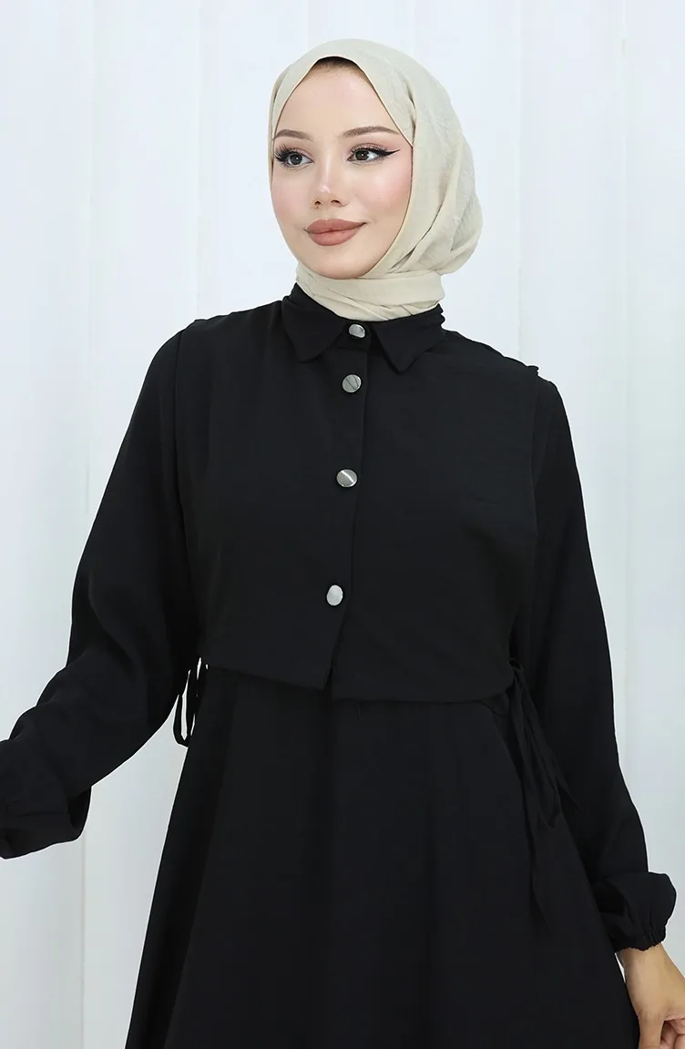 Aerobin Kumaş Yelek Elbise İkili Takım 2142-04 Siyah