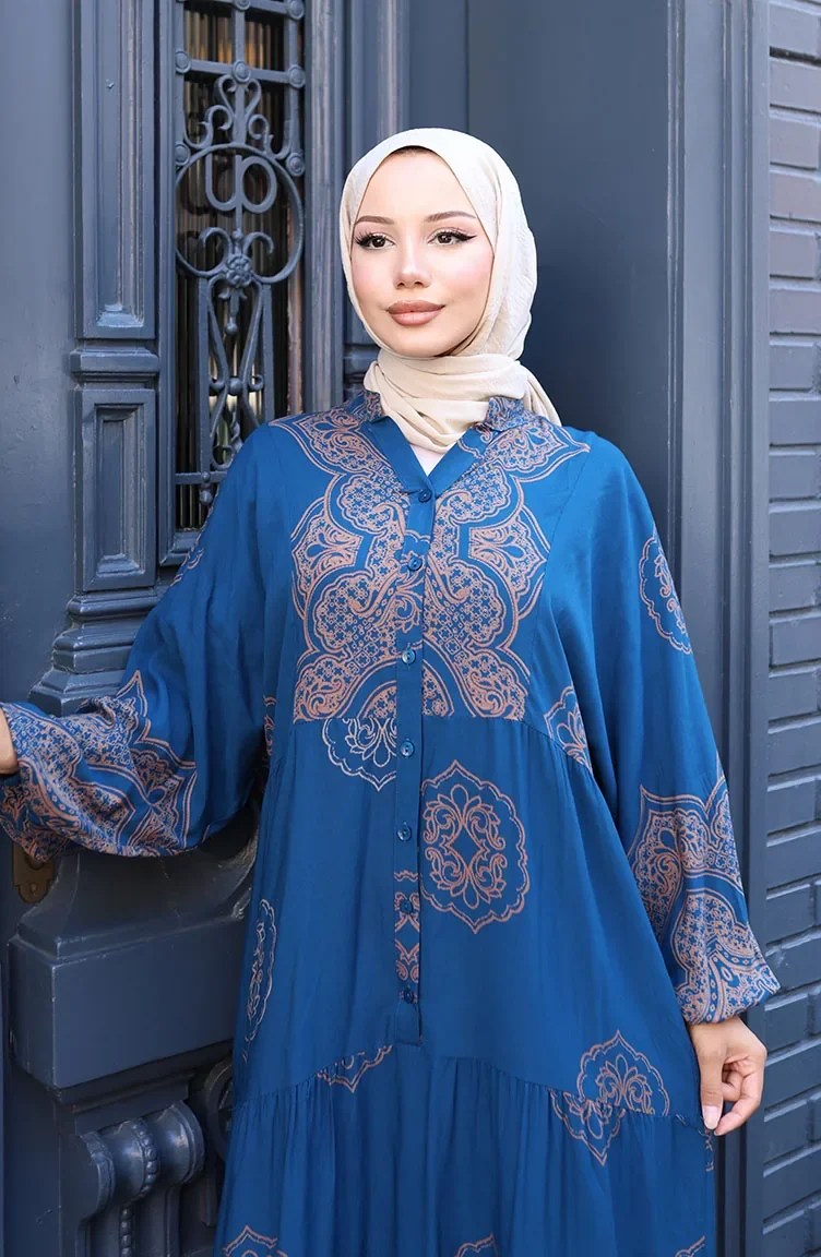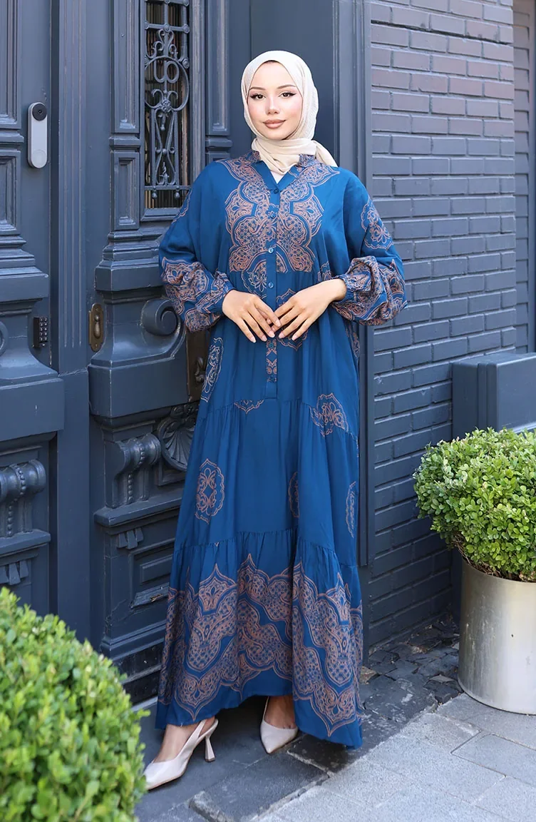 Balon Kol Viskon Elbise 5581-02 Petrol