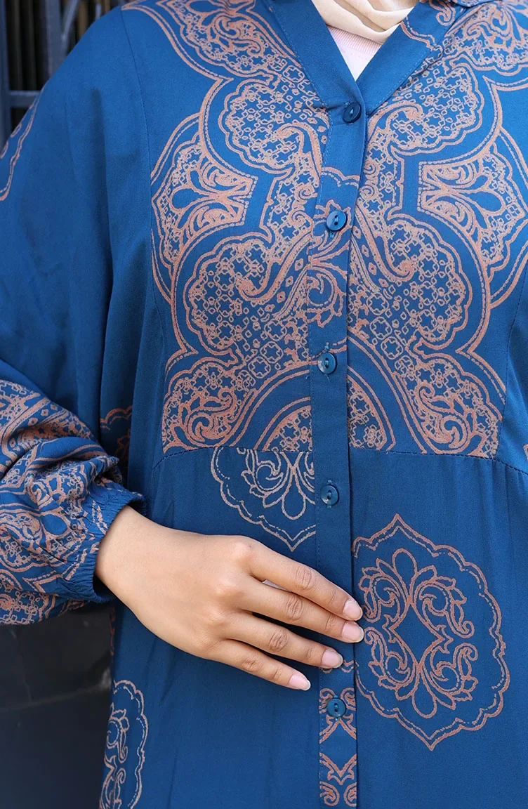 Petrol renktedir. Viskon kumaş. Desenli kumaş. Düğmeli. Lastik kollu. V yaka detayı ile içinize gömlek veya badi kullanabilirsiniz. 4 Mevsim tercih edebilirsiniz. Rahat. Standart.