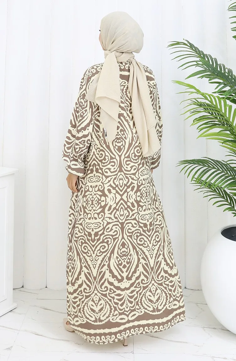 Boydan Düğmeli Viskon Elbise 2095-02 Kahverengi