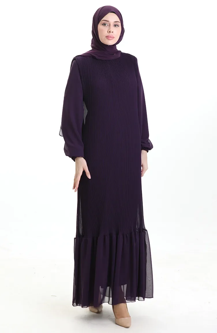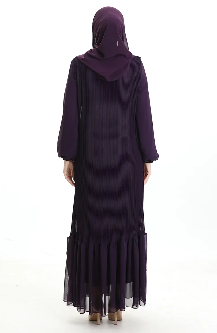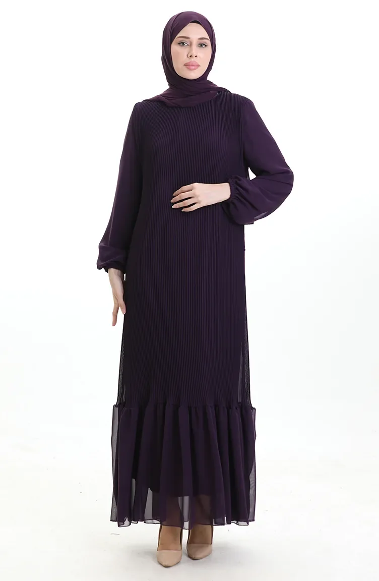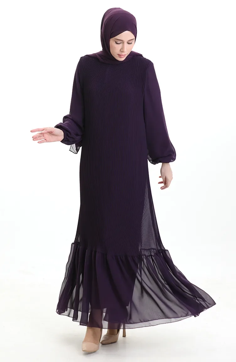 Boydan Piliseli Eteği Fırfırlı Elbise 0171-03 Mor