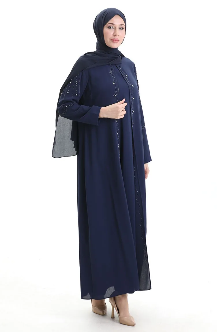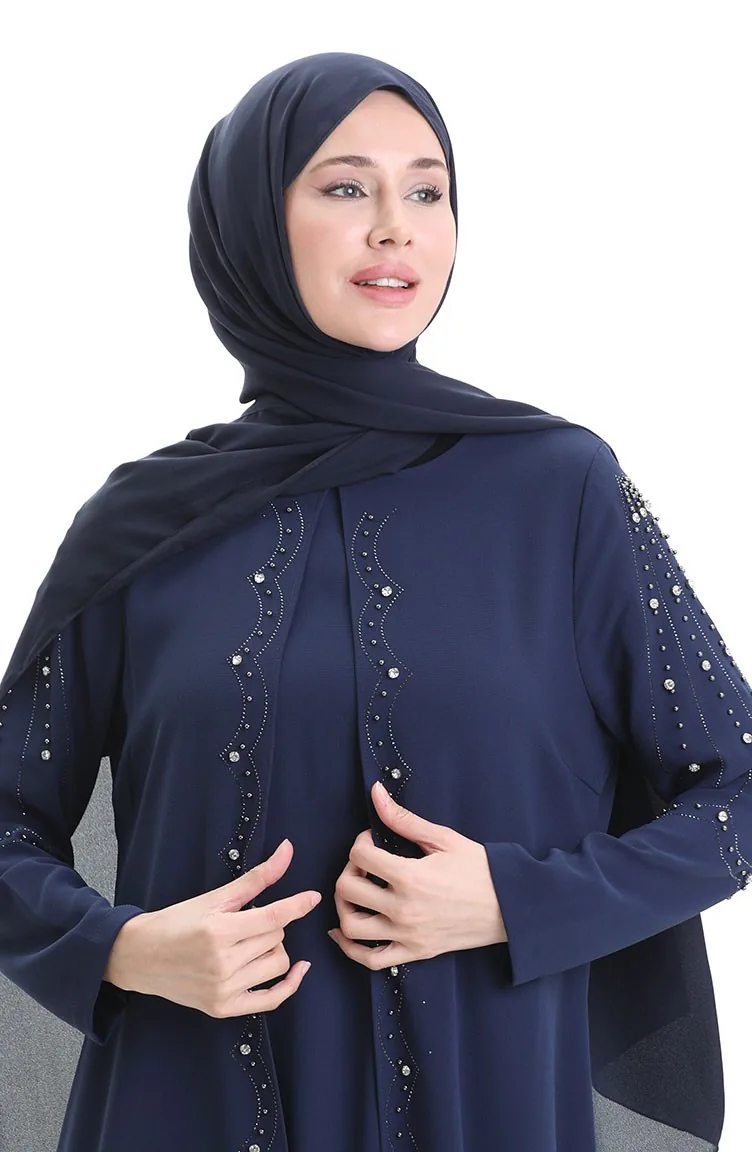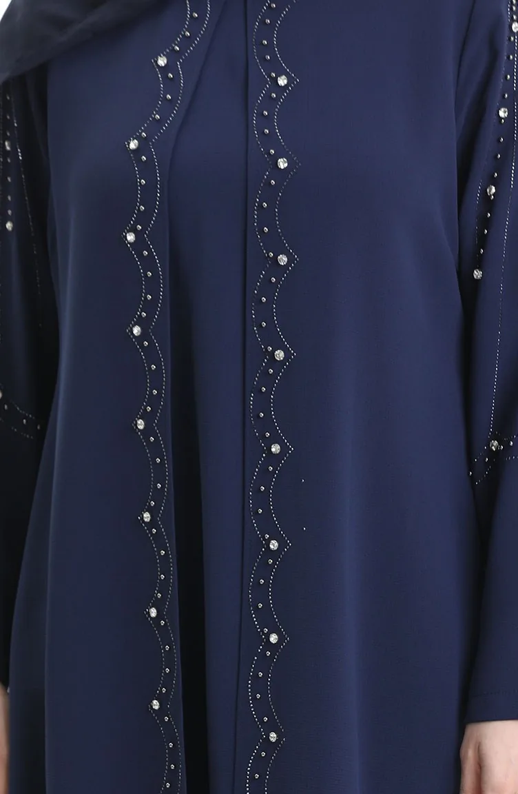 Büyük Beden Petek Kumaş Taşlı Elbise 6246-05 Parlament