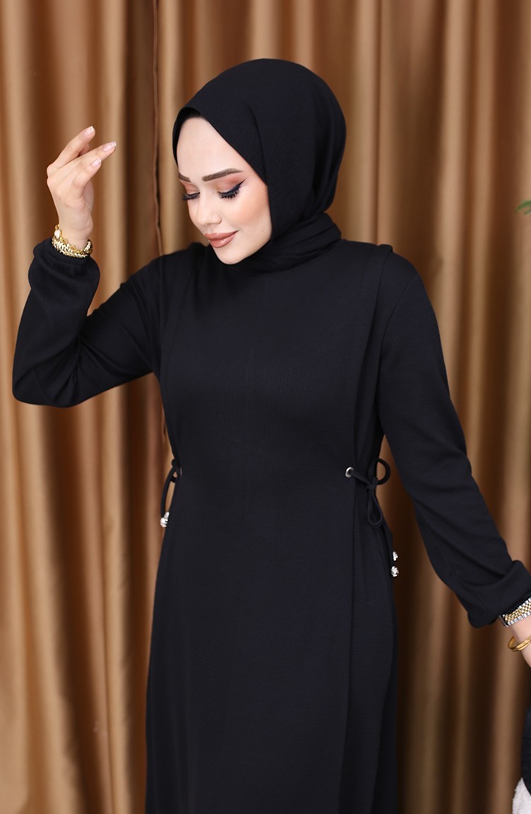 Büzgülü Elbise 5110-01 Siyah