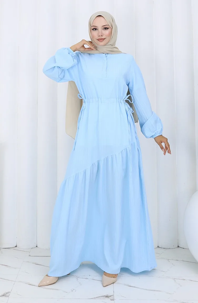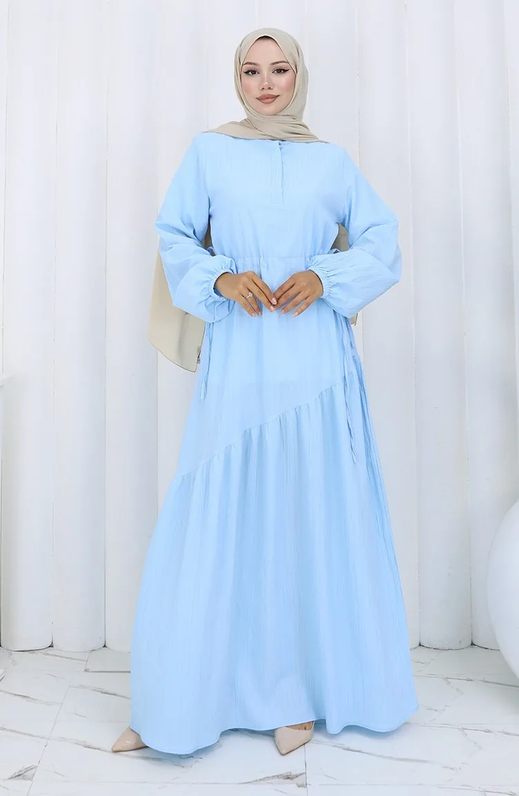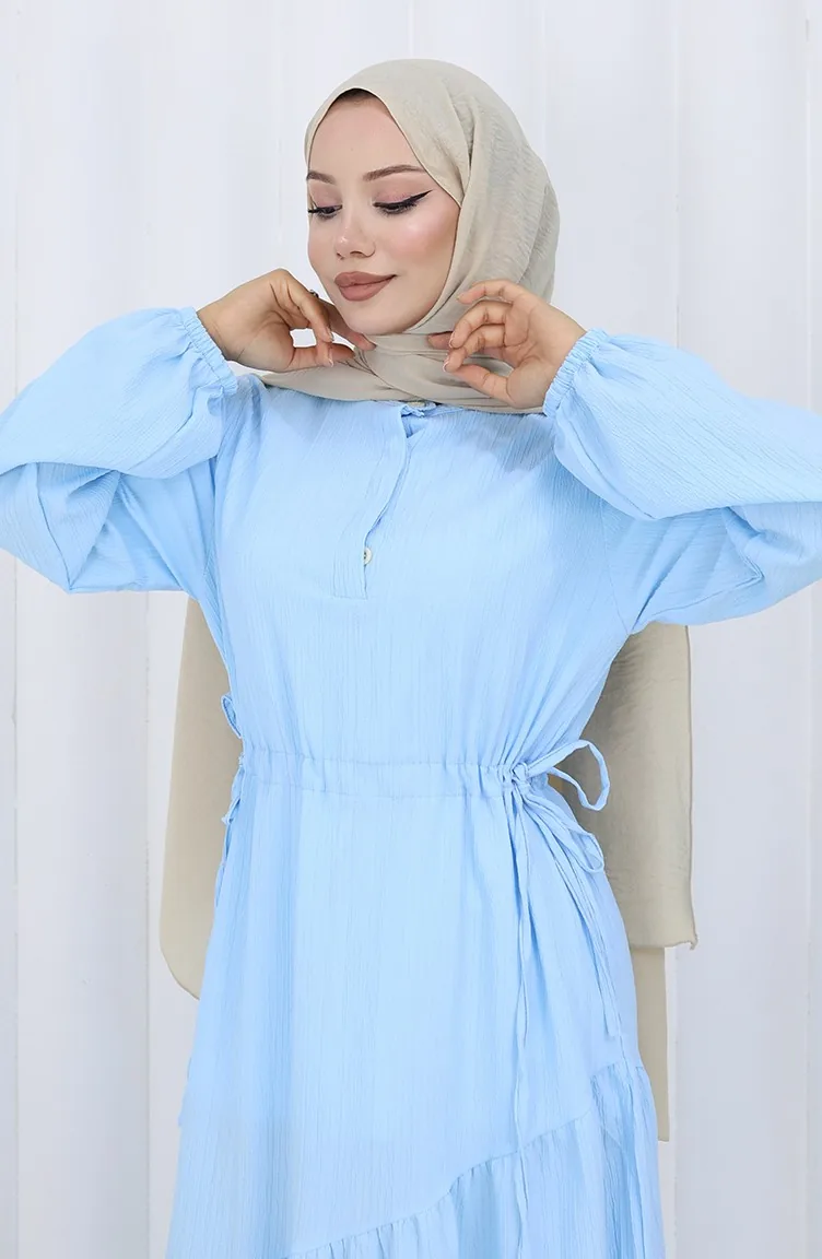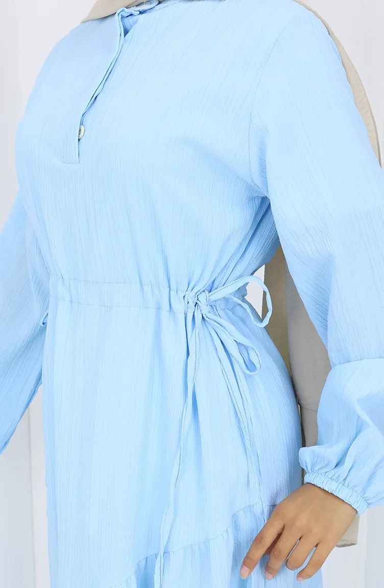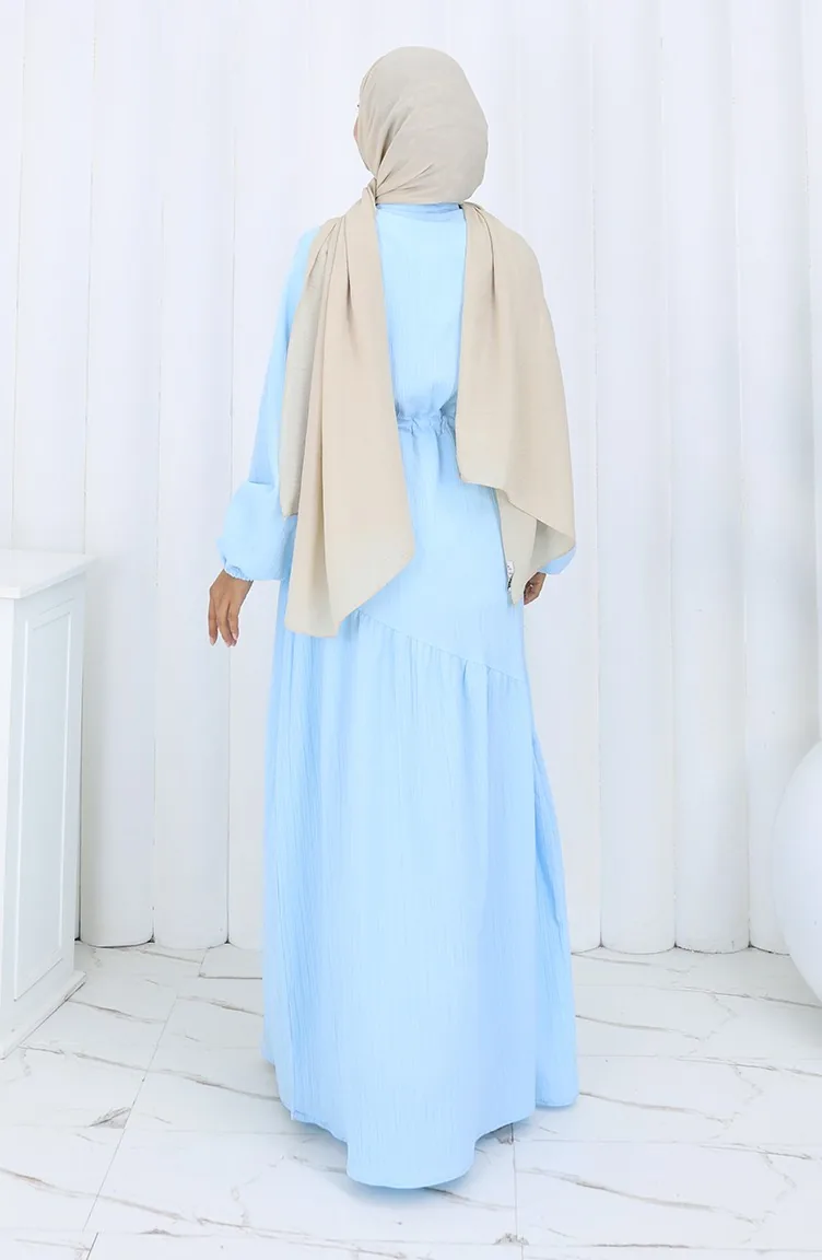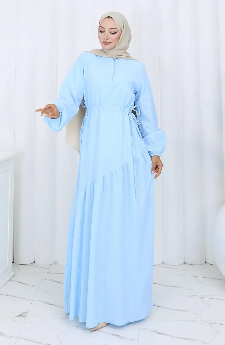 Eteği Büzgülü Elbise 2157-03 Mavi