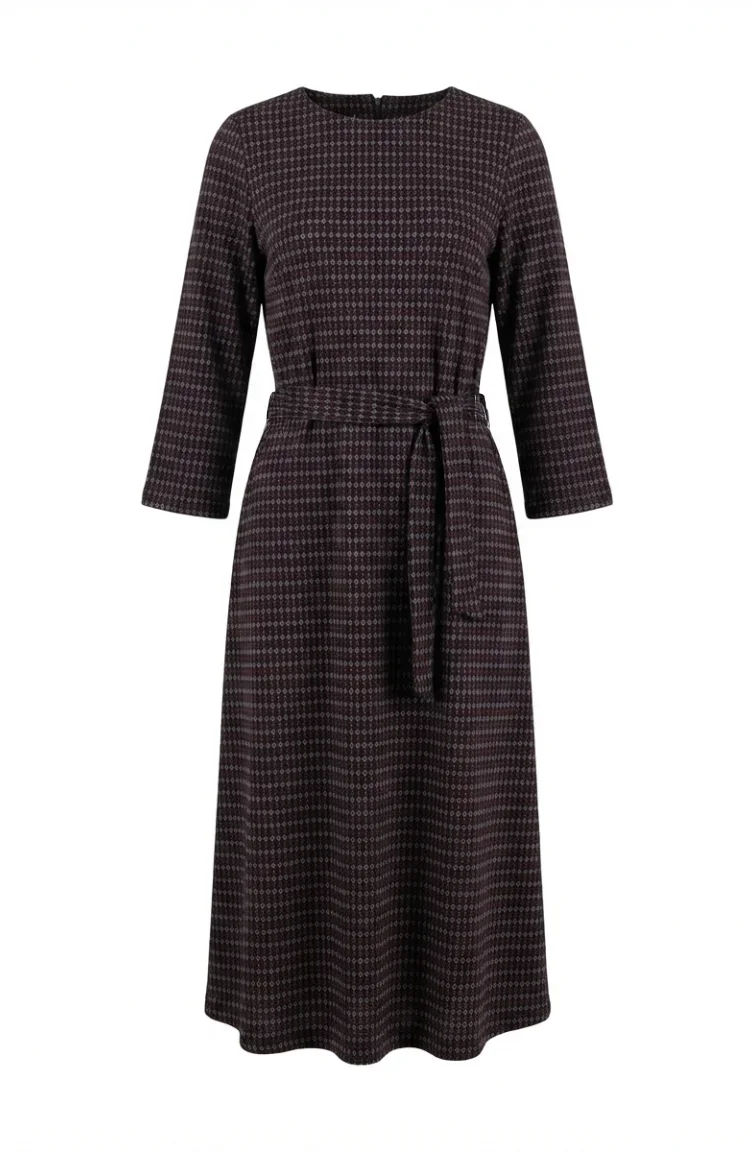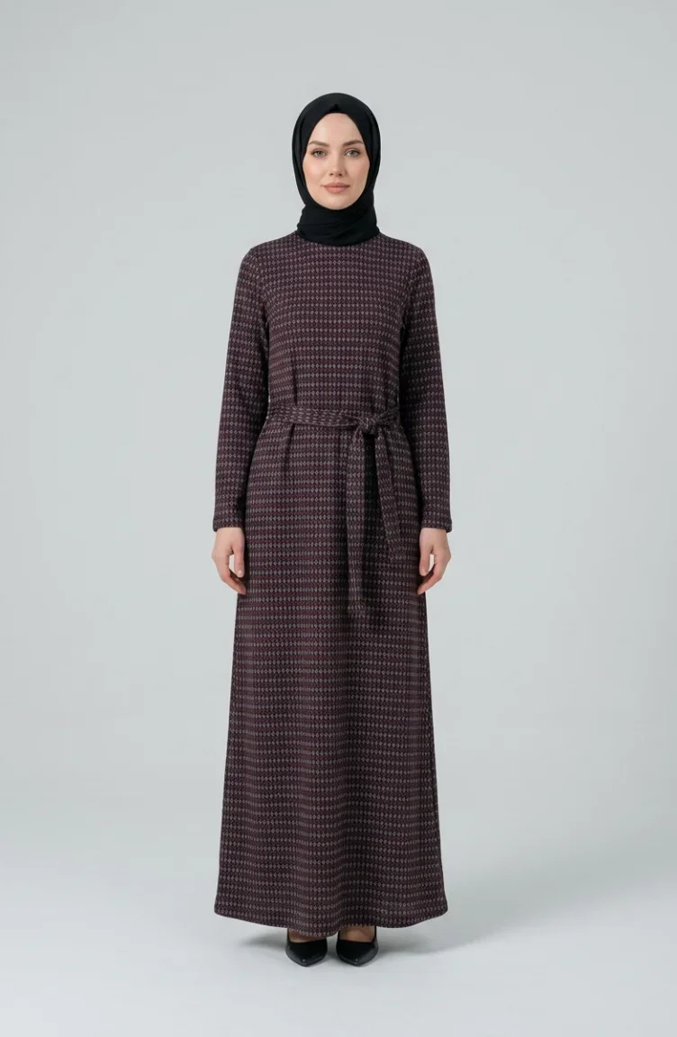 Geometrik Desenli Kuşaklı Tesettür Elbise 2222-01 Mor