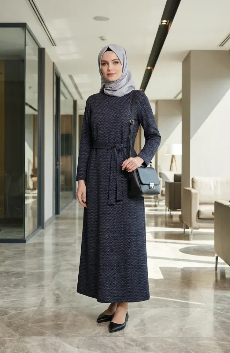 Modern muhafazakar giyimin en şık örneklerinden biri olan bu tasarım, estetik detayları ve konforlu yapısıyla gardırobunuzun vazgeçilmezi olmaya adaydır. Dört mevsim boyunca rahatlıkla tercih edebileceğiniz bu ürün, kaliteli polyester dokusu sayesinde gün boyu formunu korur ve kırışıklığa karşı dayanıklılık gösterir.Kumaş Özelliği: Yüksek kaliteli polyester kumaştan üretilmiştir.Tasarım Detayları: Bel kısmındaki ayarlanabilir kuşak detayı, silüetinizi zarifçe vurgularken geometrik desenler dinamik ve modern bir görünüm sunar.Kullanım Alanı: Hem günlük şıklığınızda hem de özel davetlerde aksesuar seçimlerinizle stilinizi dönüştürmenize olanak tanır.Kalıp: Standart kalıp olup, hareket özgürlüğünü kısıtlamayan dökümlü bir yapıya sahiptir.İç göstermeyen yapısı ve nefes alabilen dokusuyla öne çıkan bu parça, tesettür giyim standartlarına tam uyum sağlar. Şık bir eşarp veya şal ile kombinleyerek zahmetsiz bir zarafet elde edebilirsiniz. Uzun süreli kullanım için yıkama talimatlarına uyulması önerilir.
