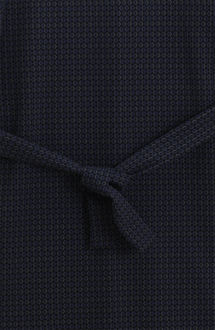 Petrol renktedir. Polyester kumaş. Desenli kumaş. Kuşaklı'dır. Sıfır yaka detayı ile rahat kullanıma sahiptir. 4 Mevsim tercih edebilirsiniz. Standart.