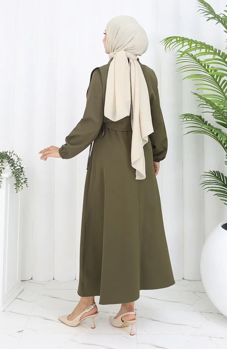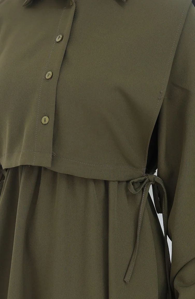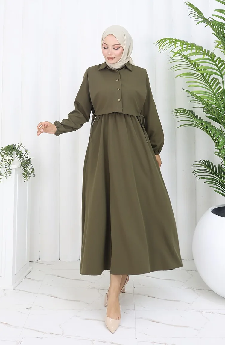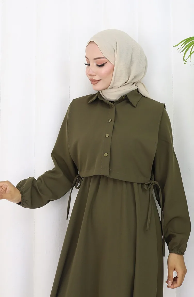Gömlek Yaka Bolera Detaylı Elbise 81898-05 Haki Yeşil