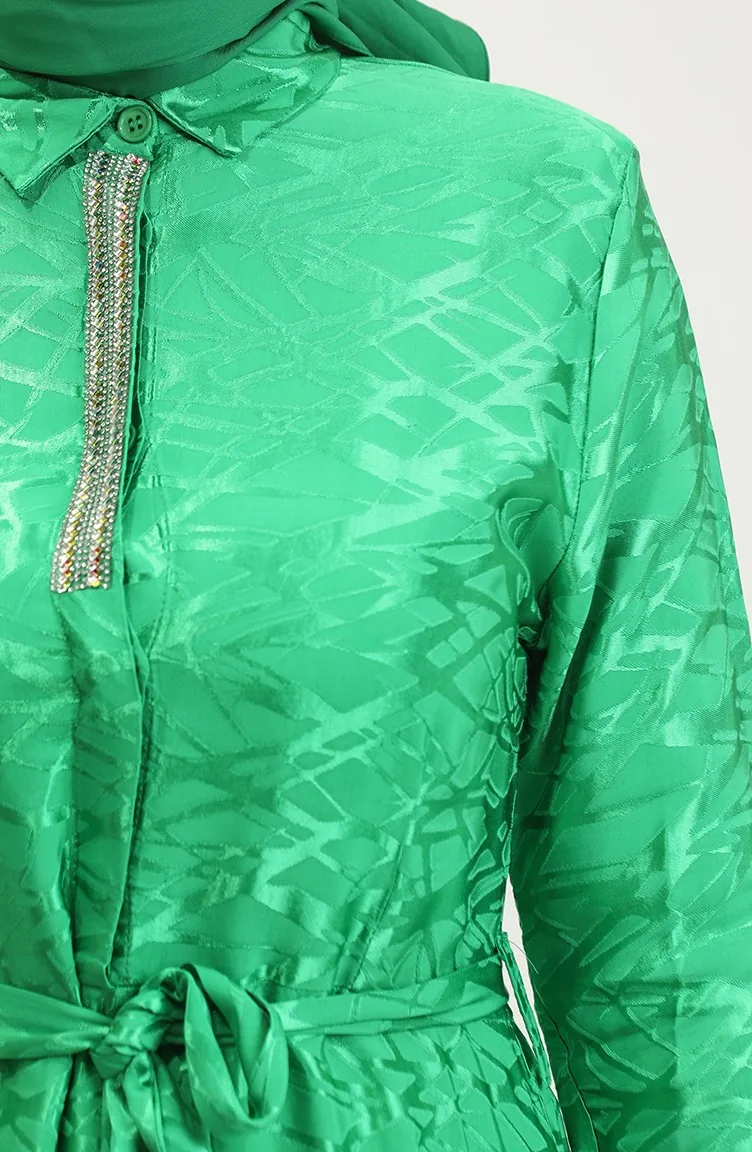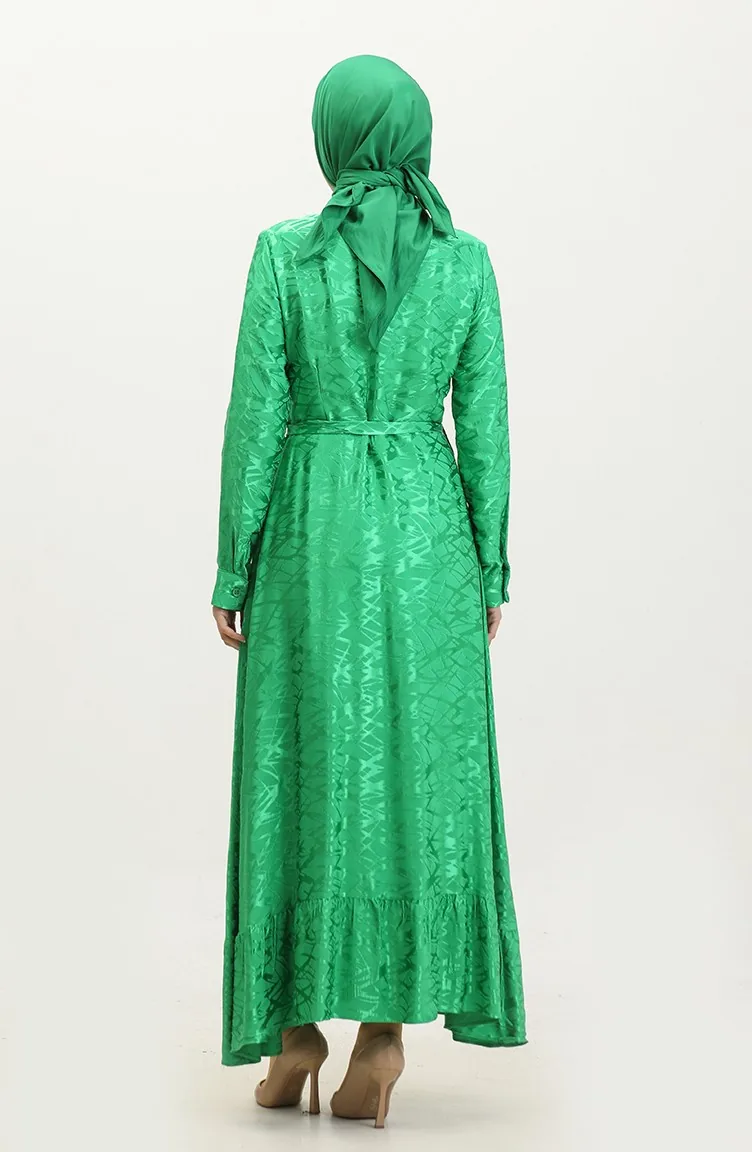Gömlek Yaka Desenli Elbise 81854-02 Zümrüt Yeşili