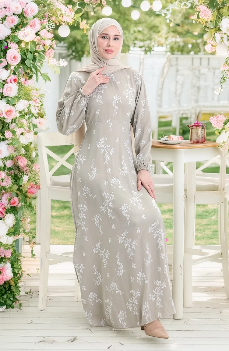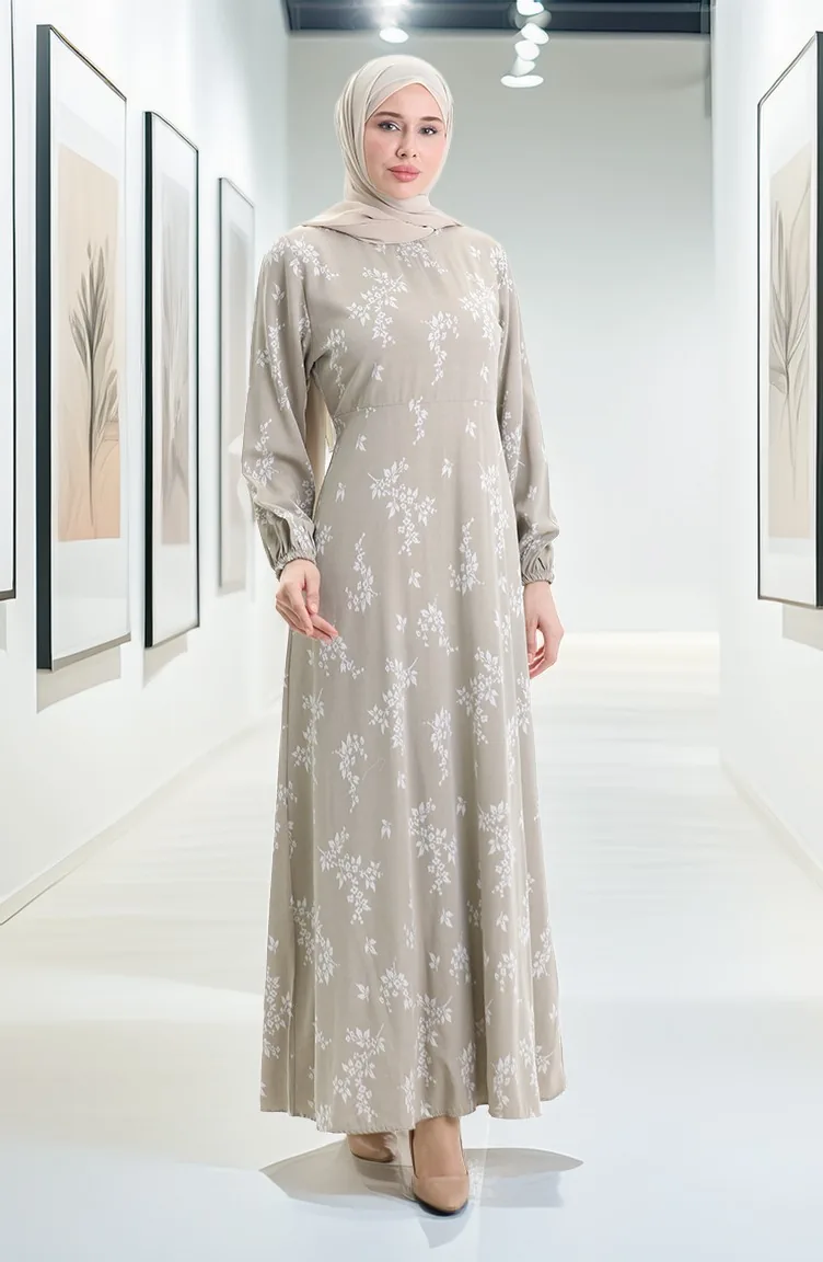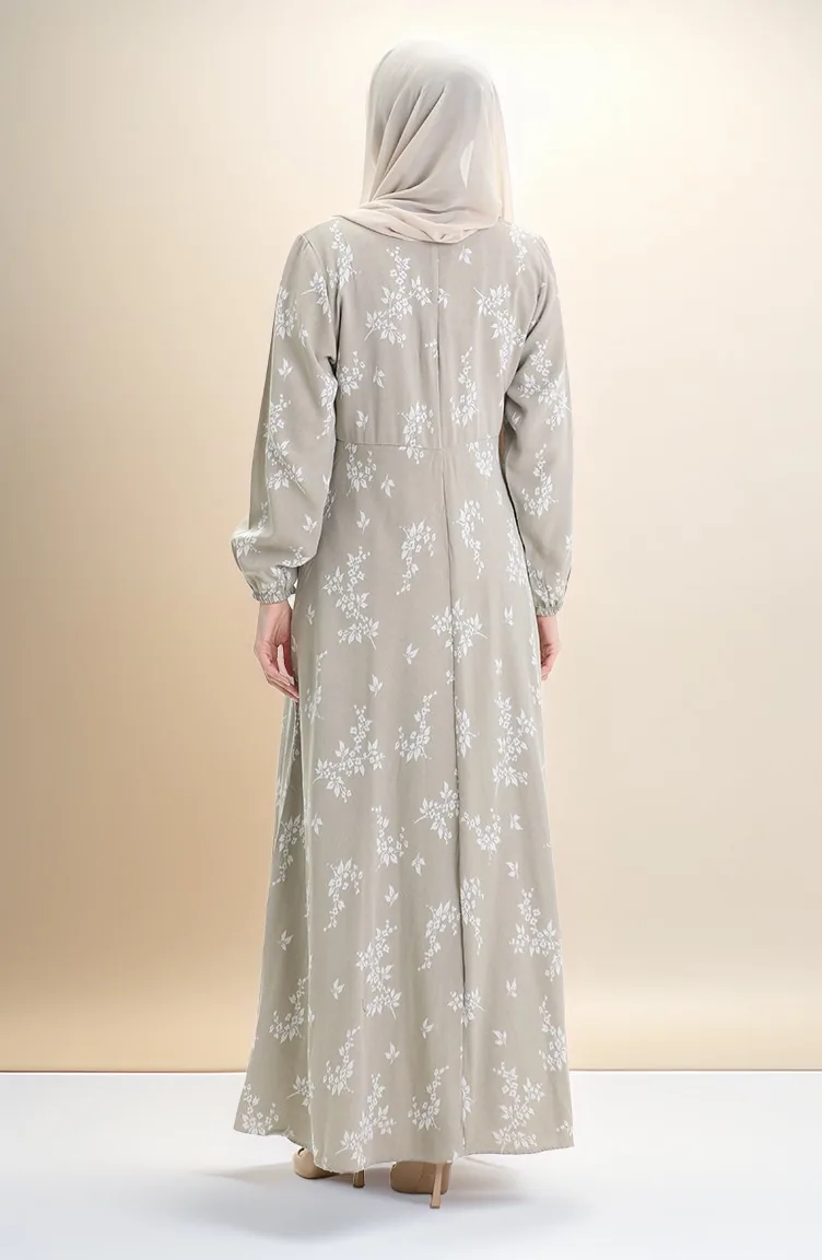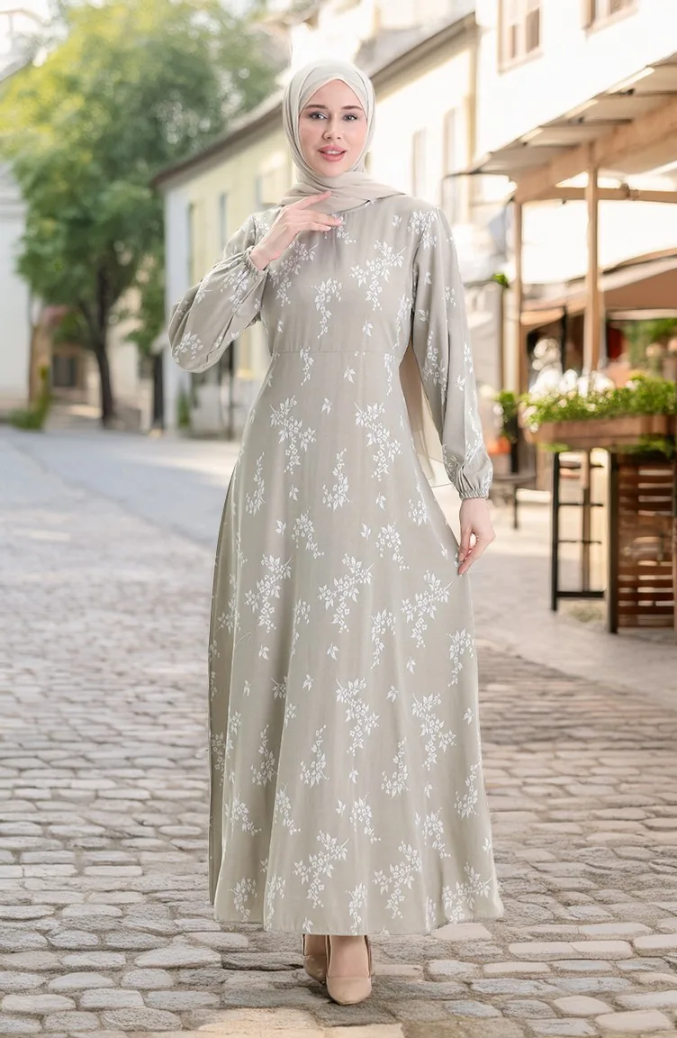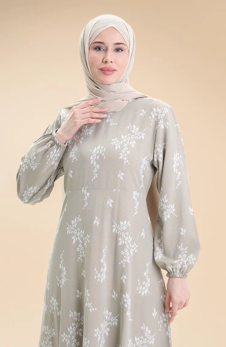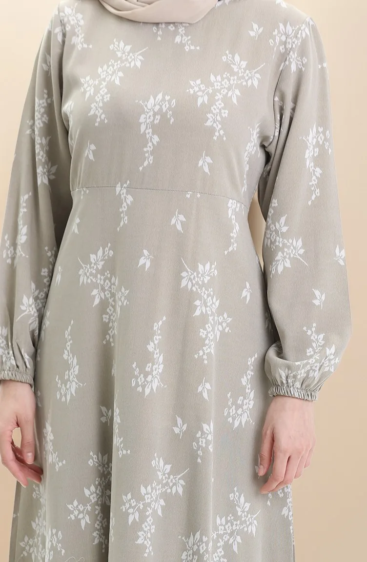 Kolu Lastikli Desenli Elbise 2047-04 Çağla Yeşili