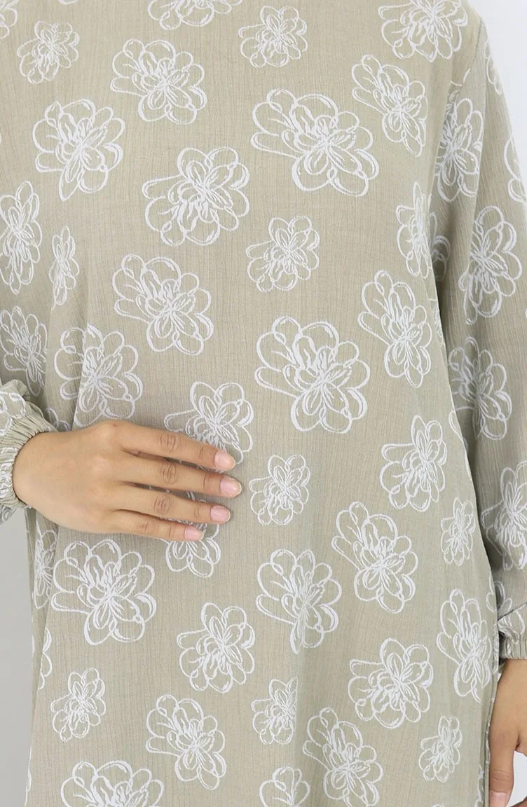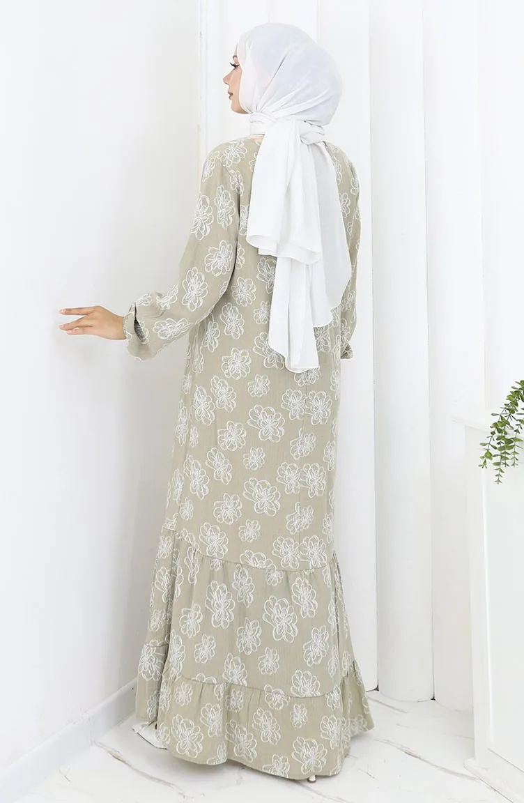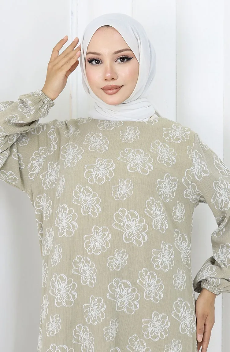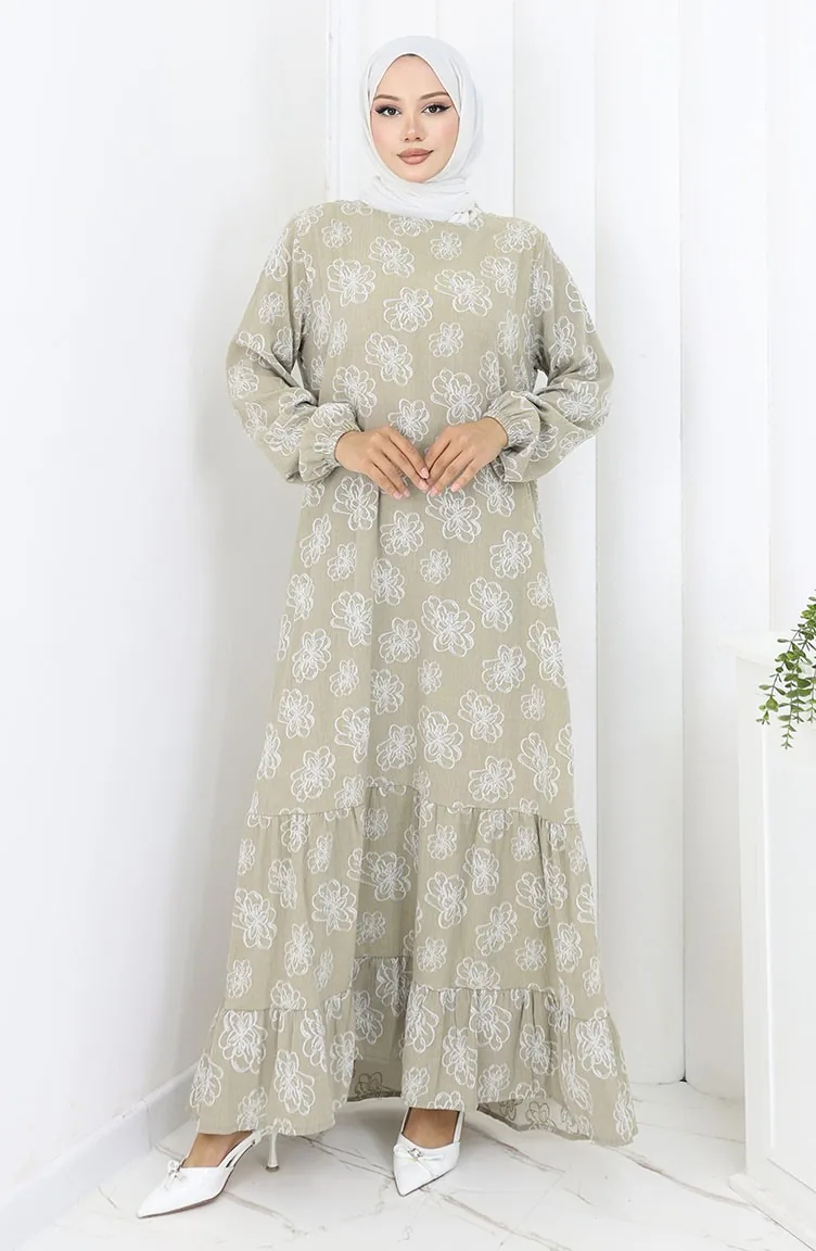 Kolu lastikli Desenli Elbise 2056-01 Çağla Yeşili