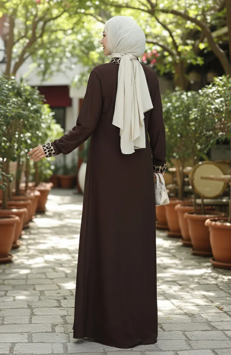 Leopar Desenli Elbise 0119-04 Kahverengi
