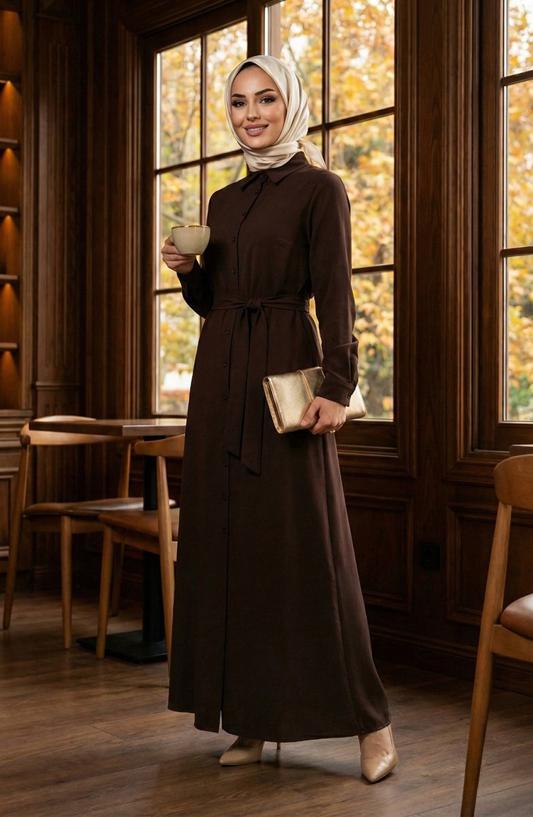 Kahverengi renktedir. Viskon kumaş. Sade. Düğmeli. 4 Mevsim tercih edebilirsiniz. Büyük beden seçeneği mevcuttur.