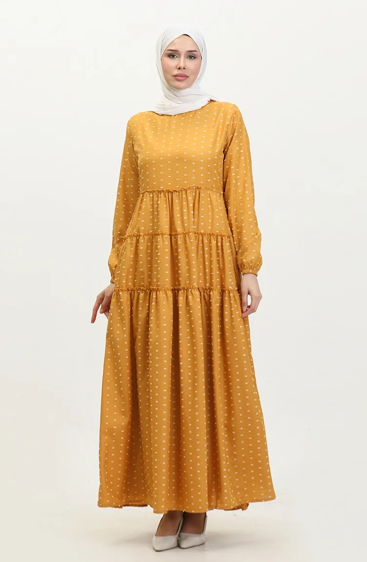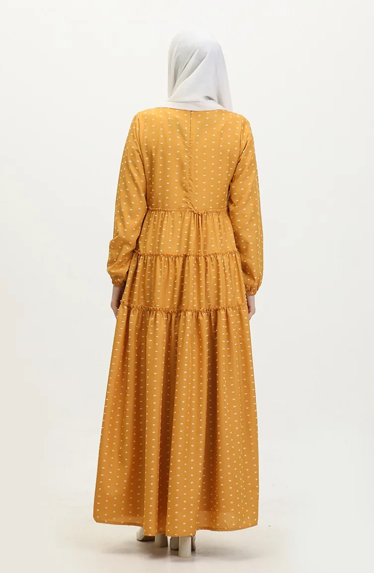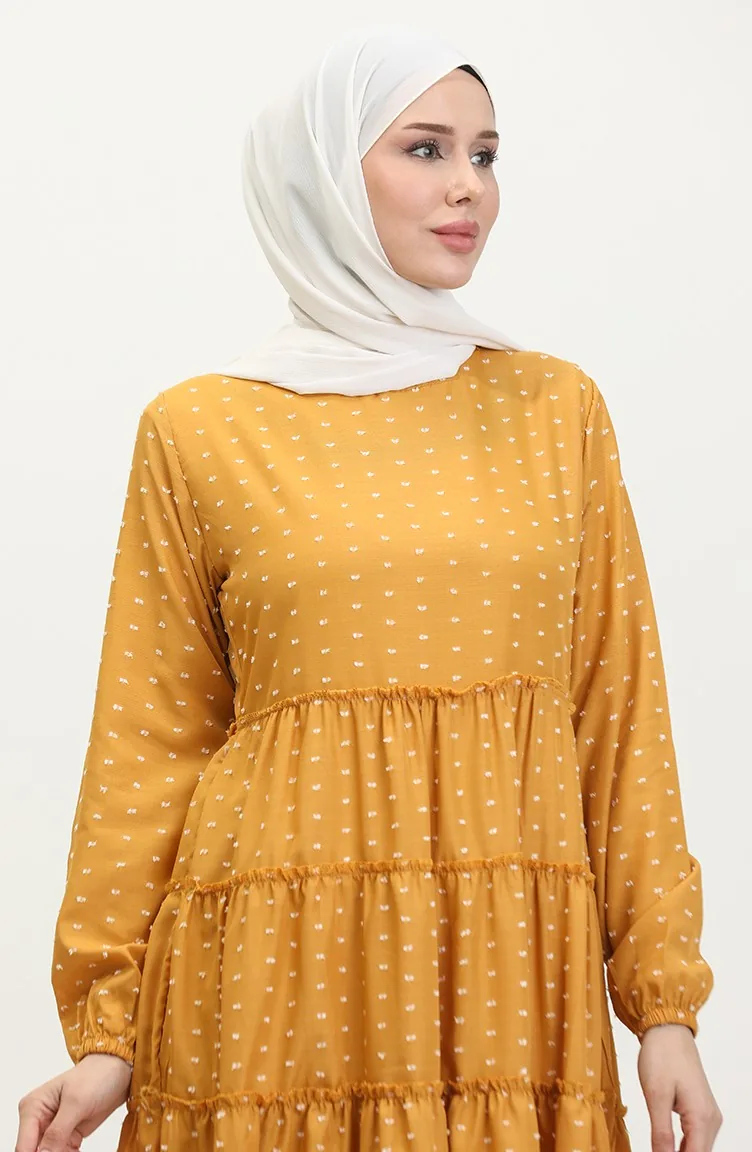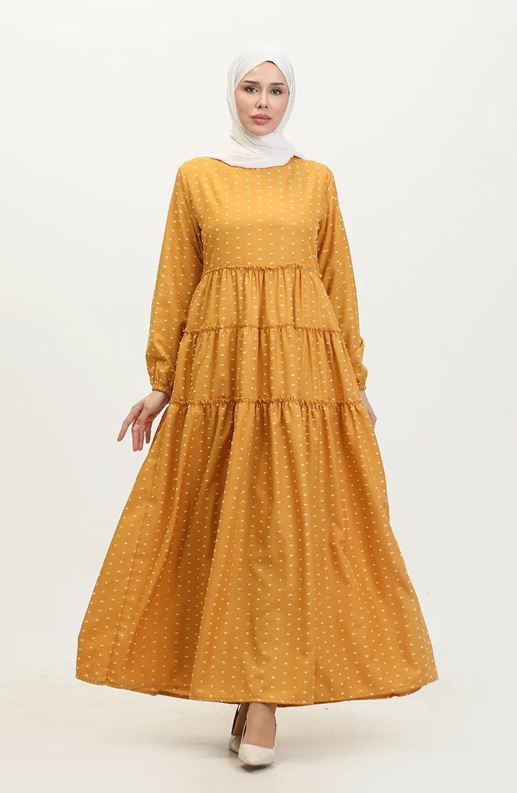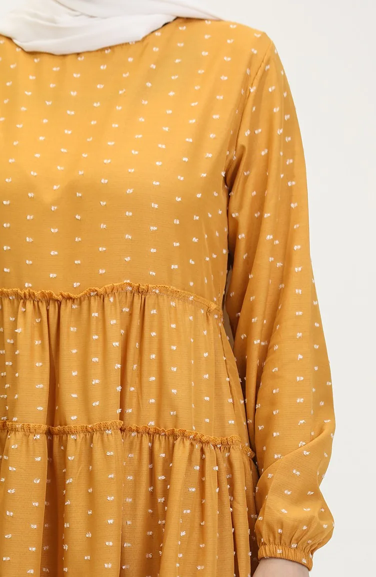 Pıtpıt Desenli Kat Kat Elbise 0371-07 Hardal