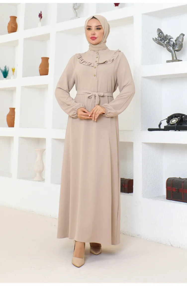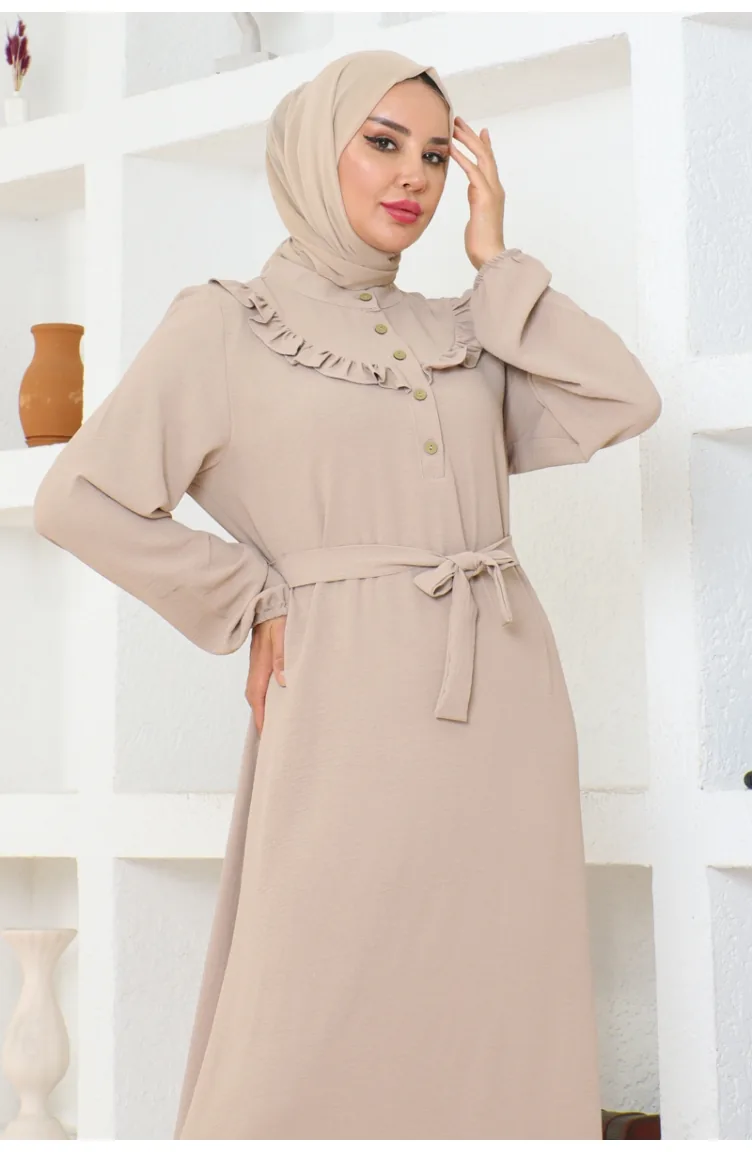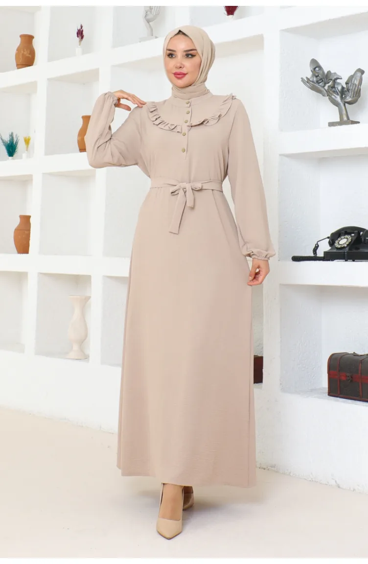 Rose Fırfırlı Aerobin Elbise 0072-04 Vizon