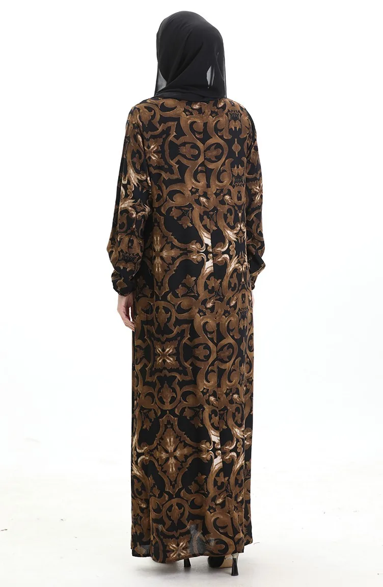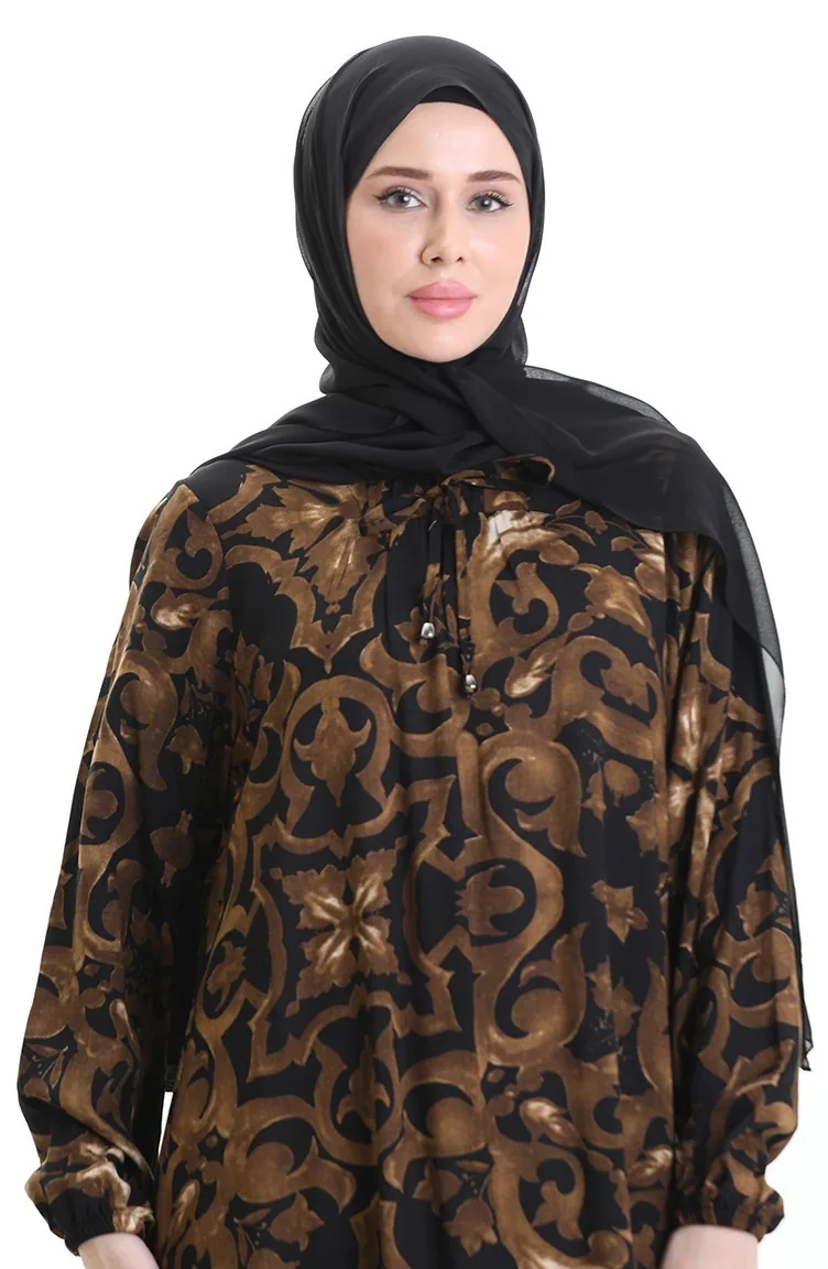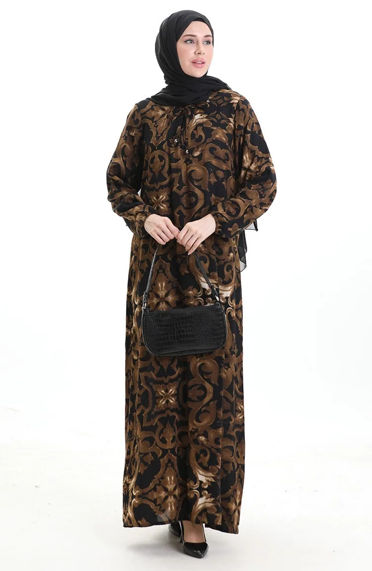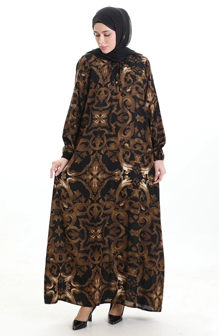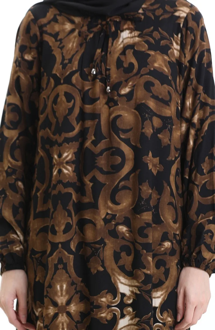 Kahverengi renktedir. Viskon kumaş. Desenli kumaş. Uzun kolludur. Yazlık. Kadın. Büyük beden seçeneği mevcuttur.