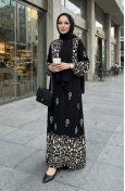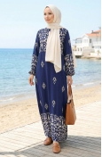 Sıfır yaka (veya bisiklet yaka) şıklığı, lastik kollu yapısı ve beli vurgulayan kuşaklı detayıyla modern bir görünüm sunar. Islamic clothing (İslami giyim) anlayışına uygun bol kesim kalıbı ve büyük beden seçenekleriyle hem şık hem de rahattır. 4 mevsim (mevsimlik) kullanıma uygundur.