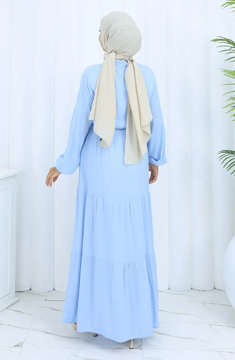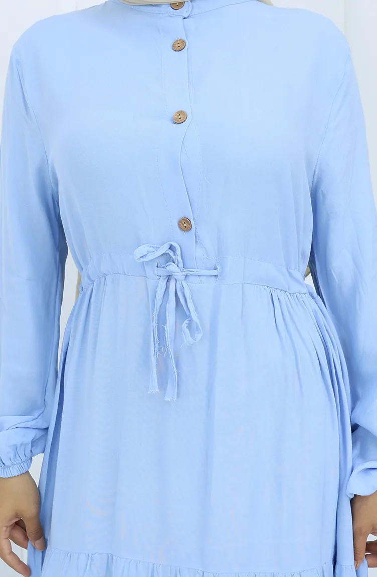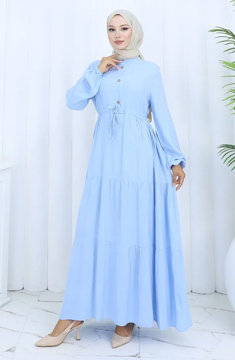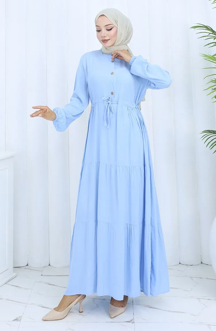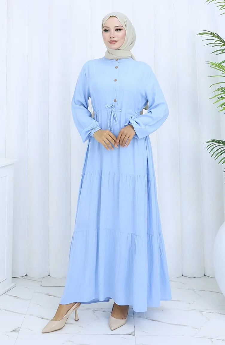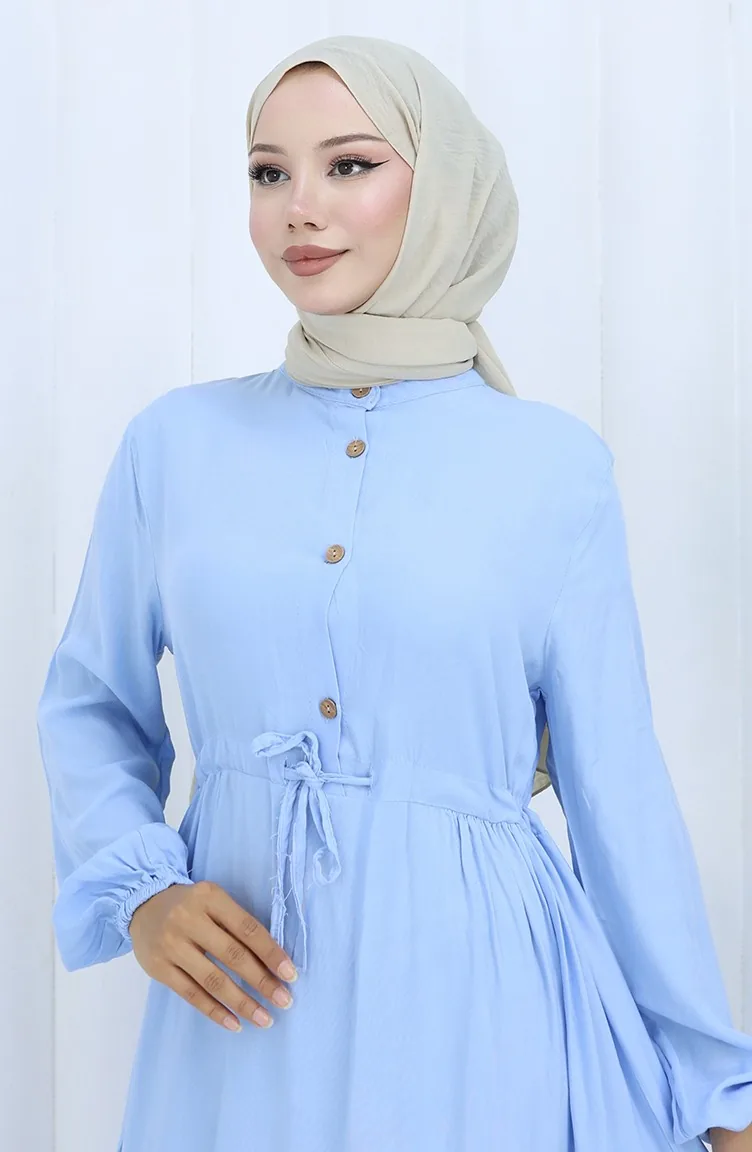 Viskon Kumaş Yarım Düğmeli Elbise 0085-13 Bebe Mavi