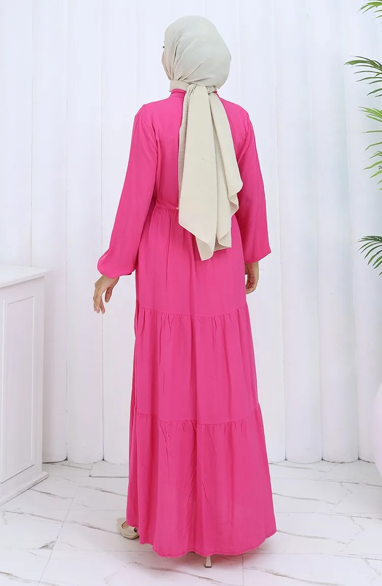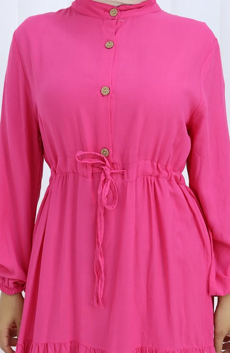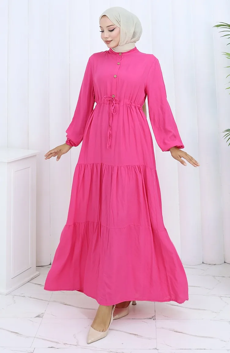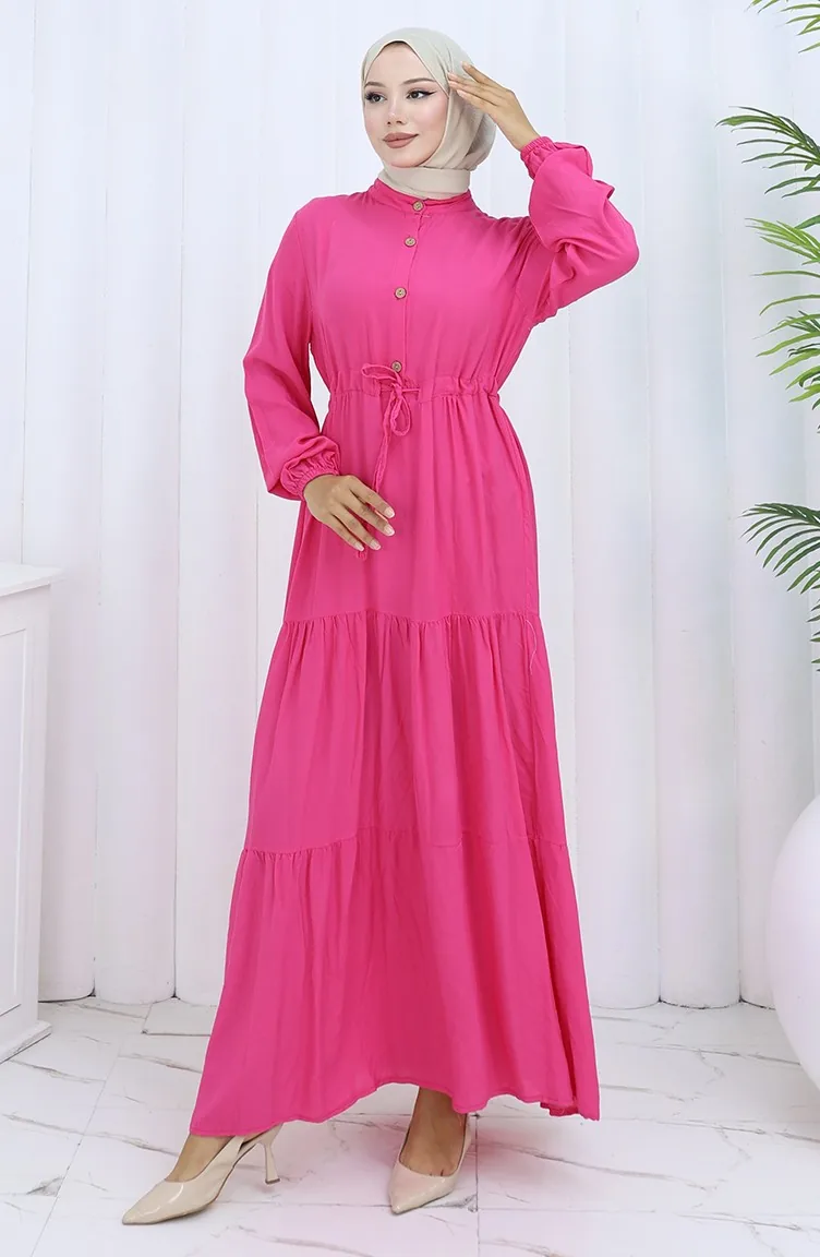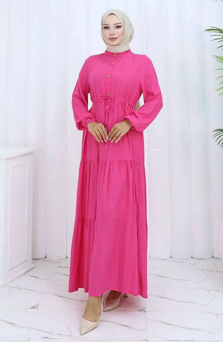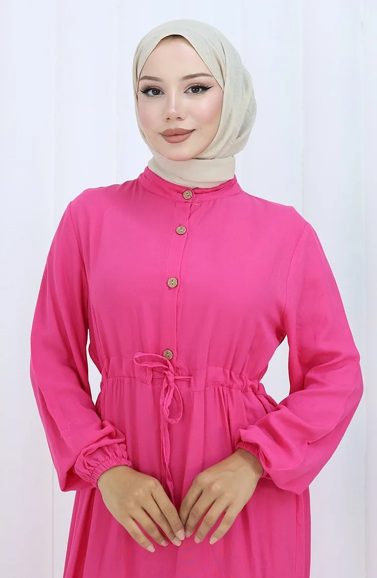 Viskon Kumaş Yarım Düğmeli Elbise 0085-15 Fuşya