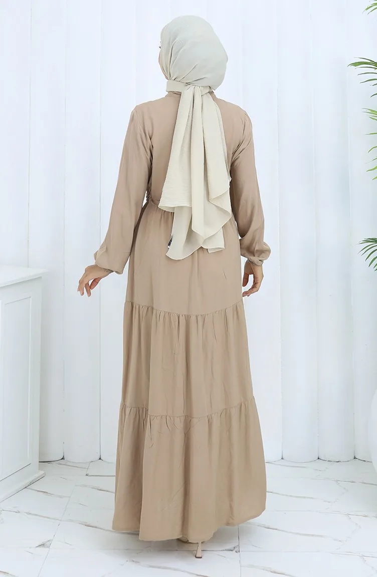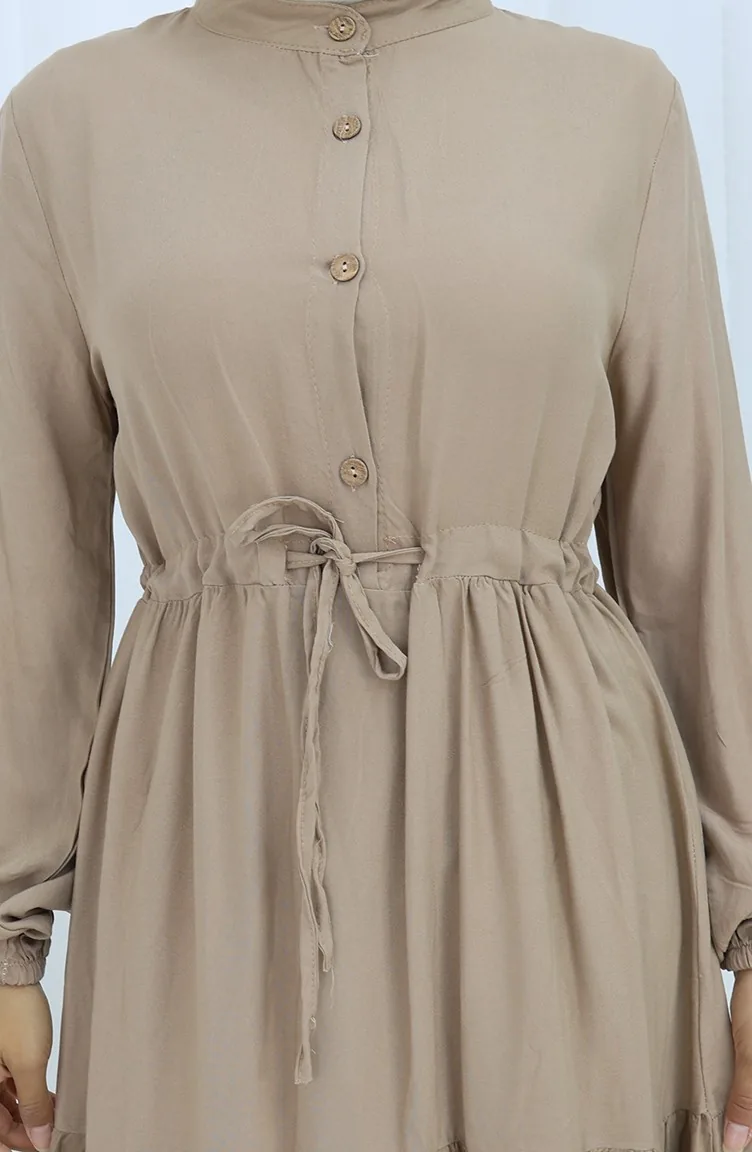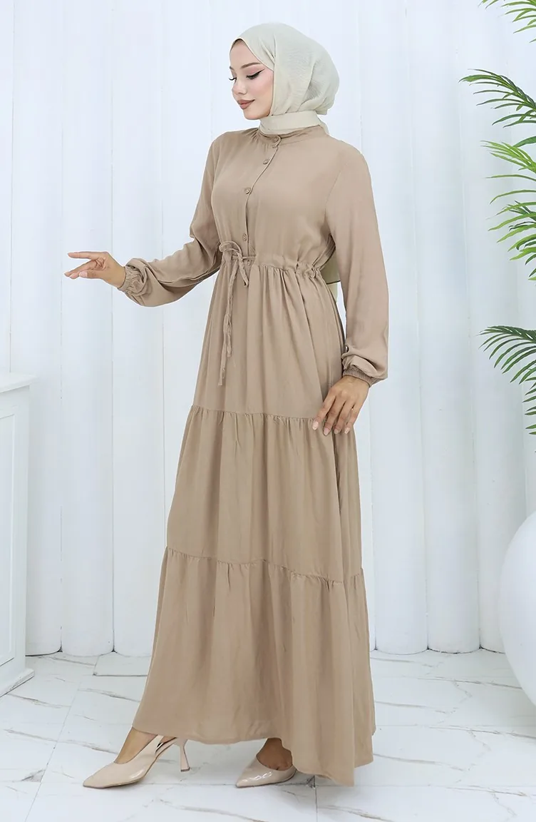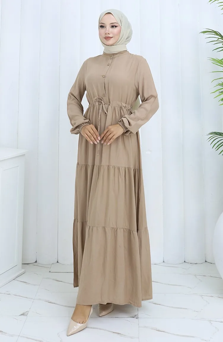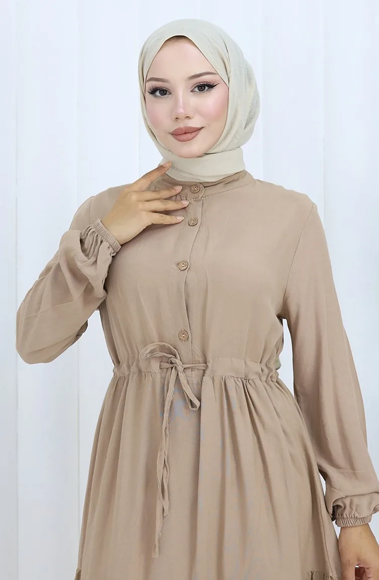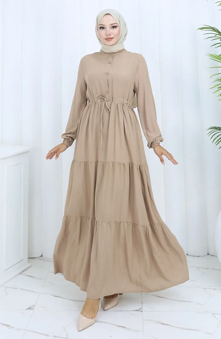 Viskon Kumaş Yarım Düğmeli Elbise 0085-17 Açık Vizon
