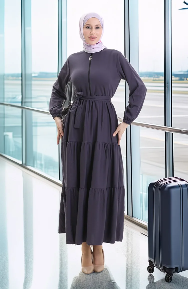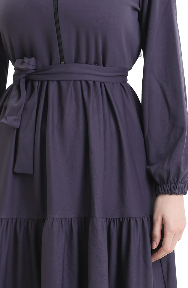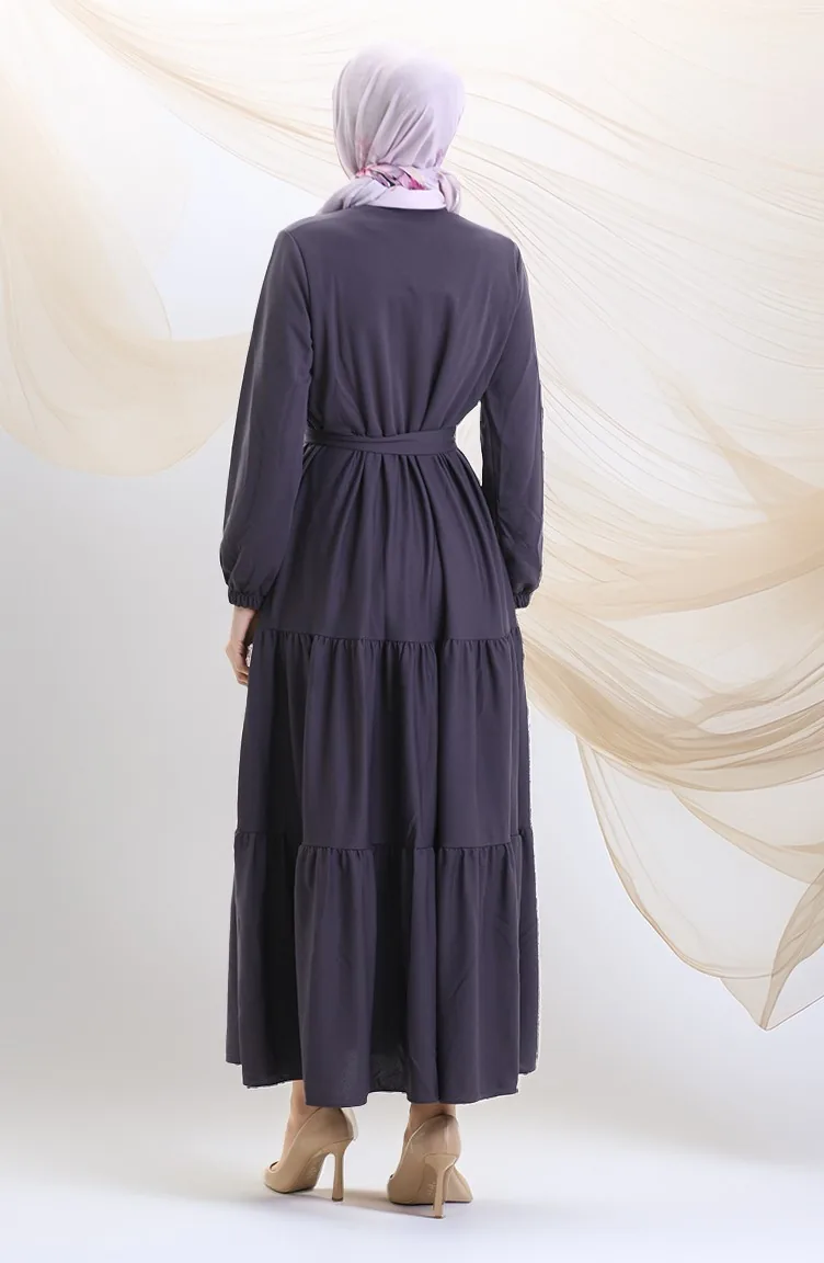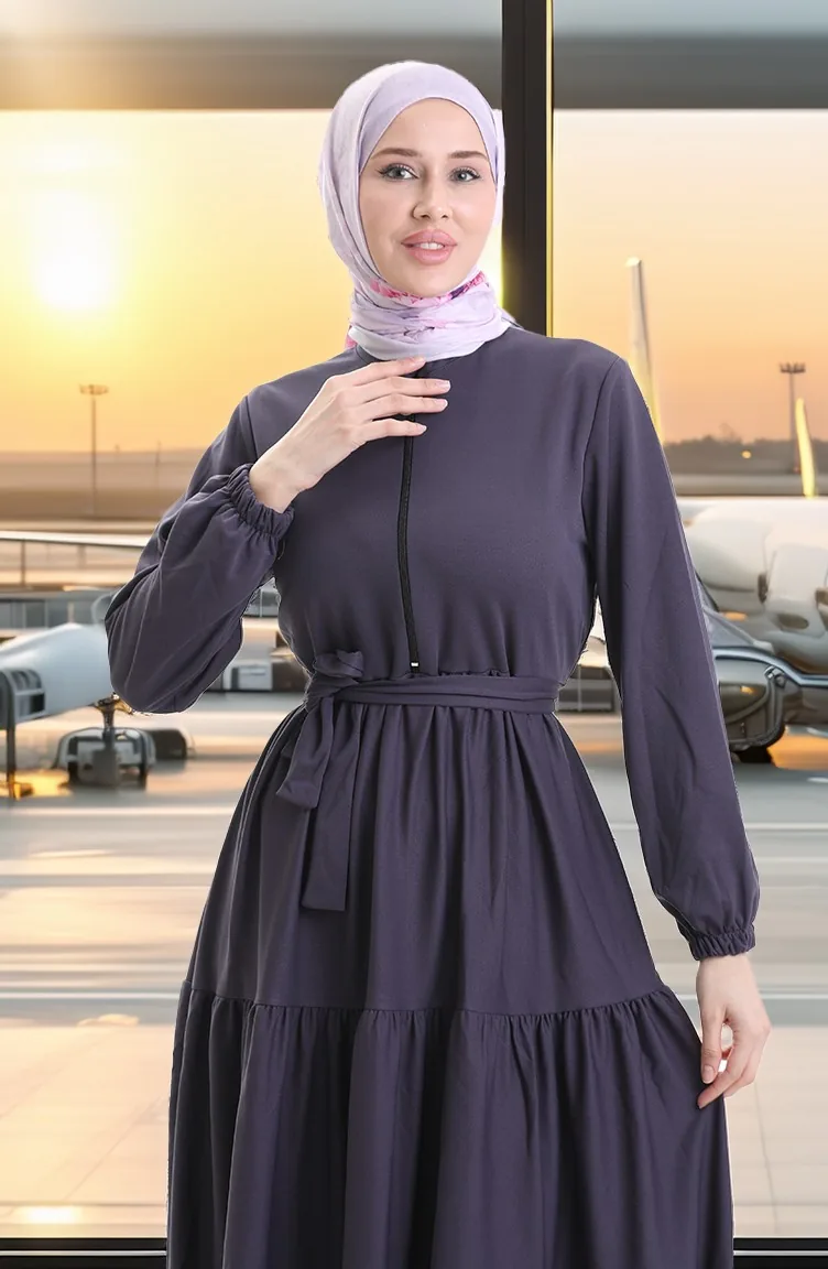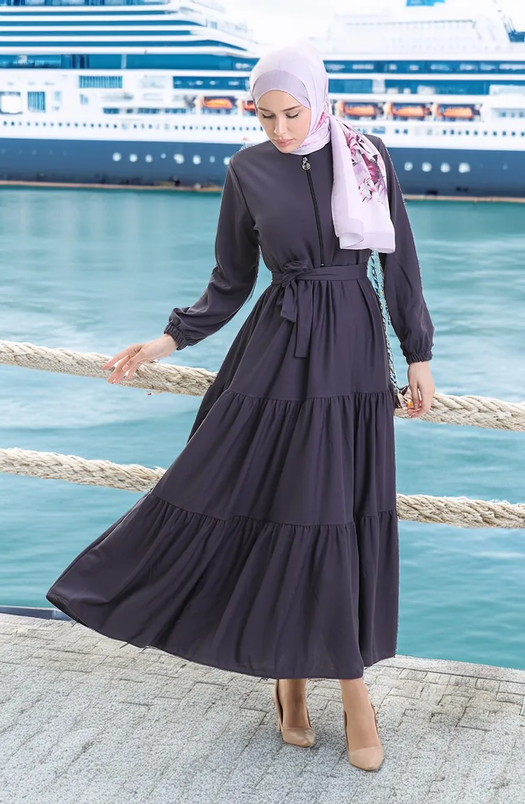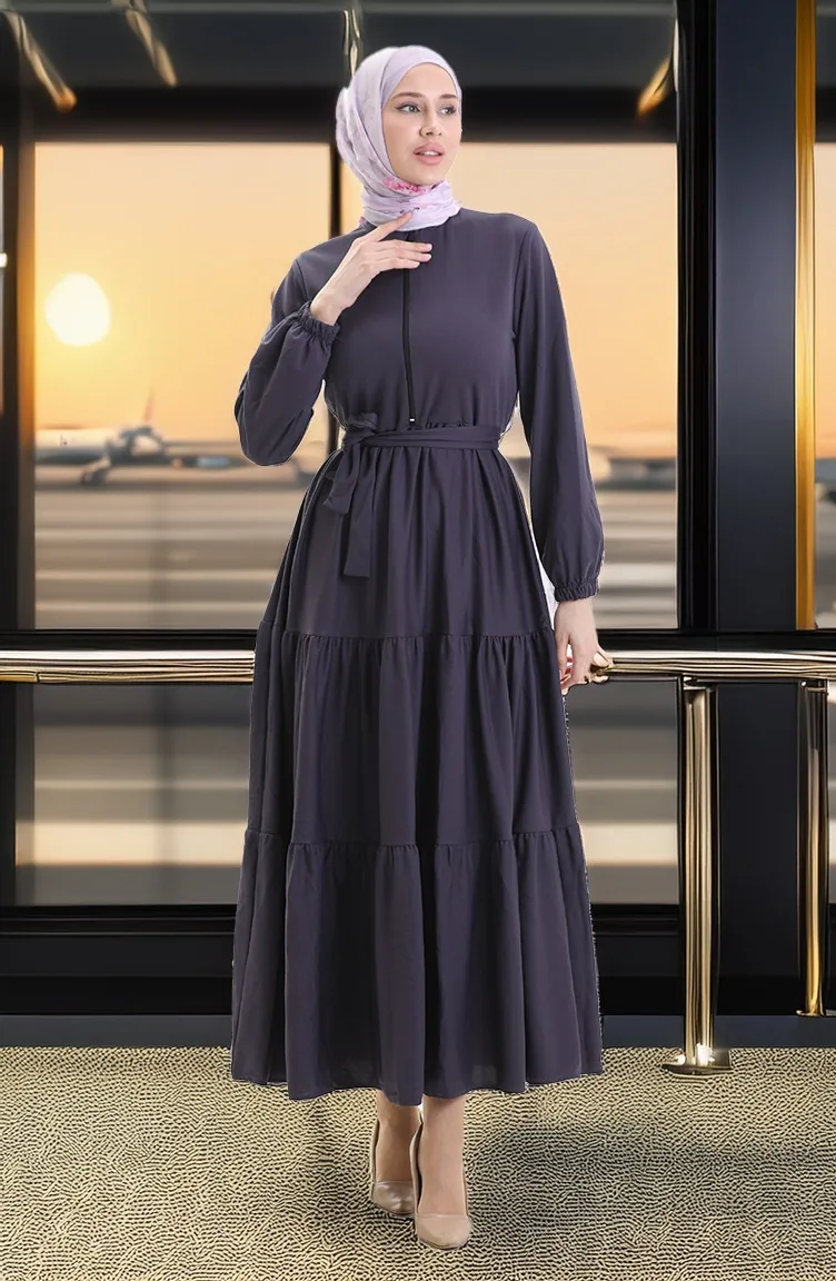 Yarım Fermuarlı Büzgülü Elbise 1202-03 Antrasit