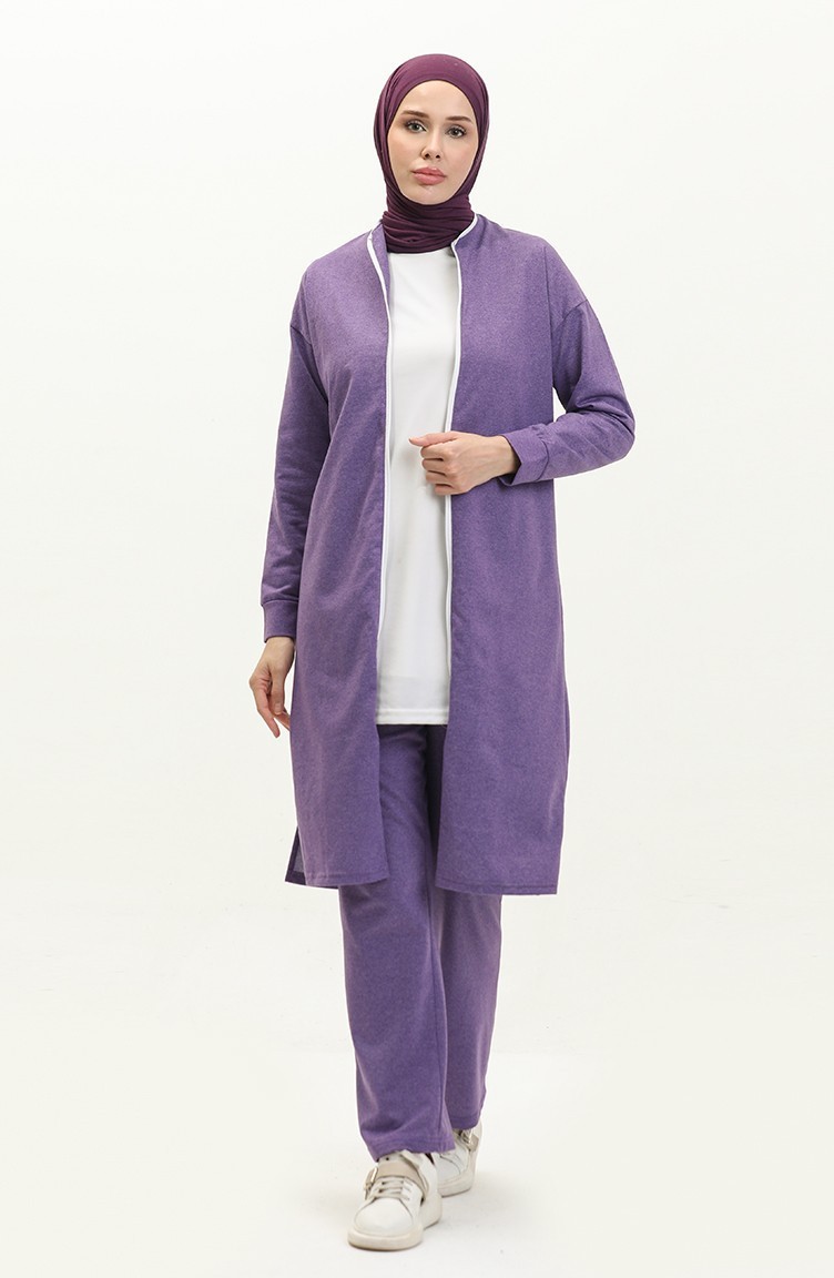 Fermuarlı Eşofman Takım 3044-10 Koyu Lila