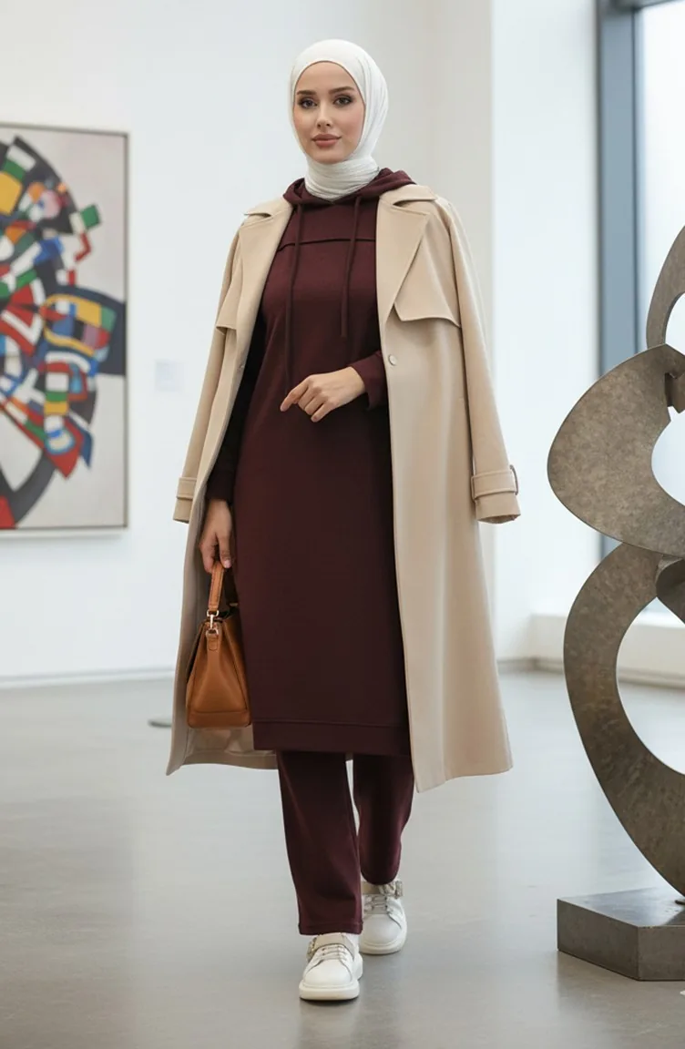 Iki Iplik Eşofman Takım 3034-14 Mürdüm