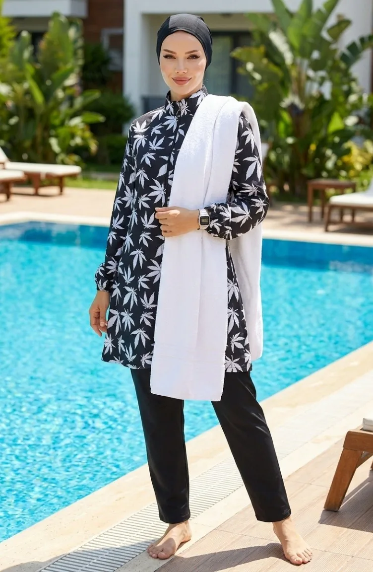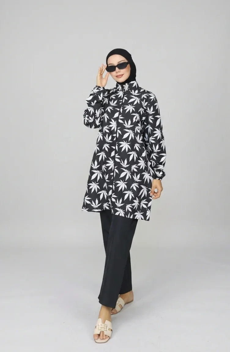 Yaz sezonunun enerjisini plajlara taşıyan Geometrik Desenli 3'lü Tesettür Mayo Takımı, modern tasarımıyla göz kamaştırıyor. %100 polyester kumaş yapısı sayesinde su itici özelliğe sahip olan bu takım, sudan çıktığınızda hızla kuruyarak konforunuzu en üst seviyeye çıkarır.Ürün İçeriği: Üst tunik, pantolon ve bone olmak üzere 3 parçadan oluşmaktadır.Kumaş Özelliği: Hafif yapılı polyester kumaş, hareket özgürlüğü sağlar ve vücuda yapışmaz.Tasarım: Dinamik geometrik desenler, modern muhafazakar giyim estetiğiyle birleşmiştir.Tam kapalı formuyla mahremiyetinizi korurken, nefes alabilen dokusu sayesinde sıcak yaz günlerinde ferah bir kullanım sunar. Denizde ve havuzda kullanım için ideal olan bu model, şıklığı ve fonksiyonelliği bir araya getiren bir yapıdadır. Şık bir plaj çantası ve güneş gözlükleriyle kombinleyerek stilinizi tamamlayabilirsiniz.