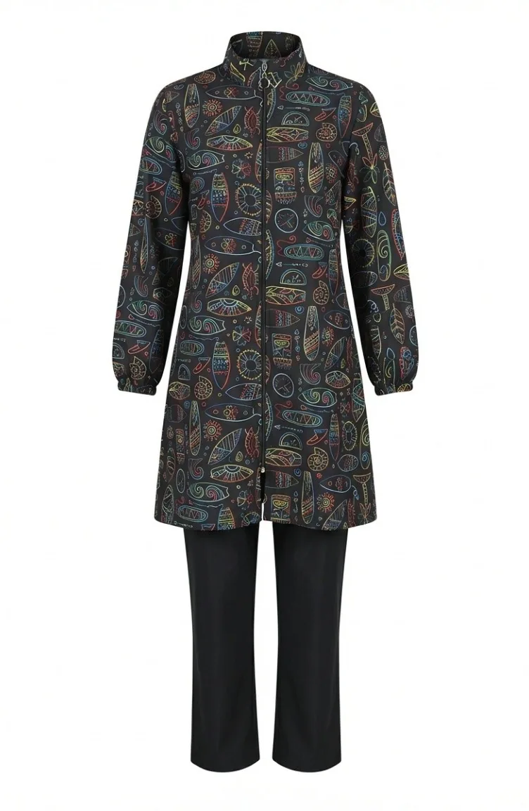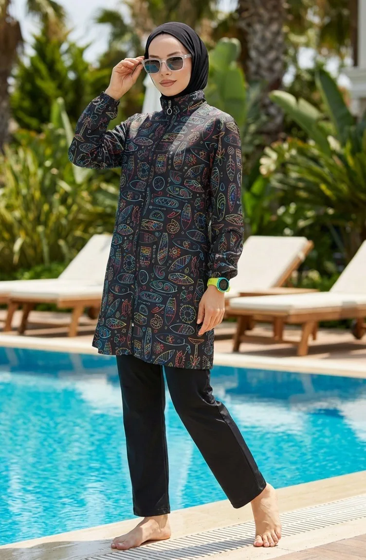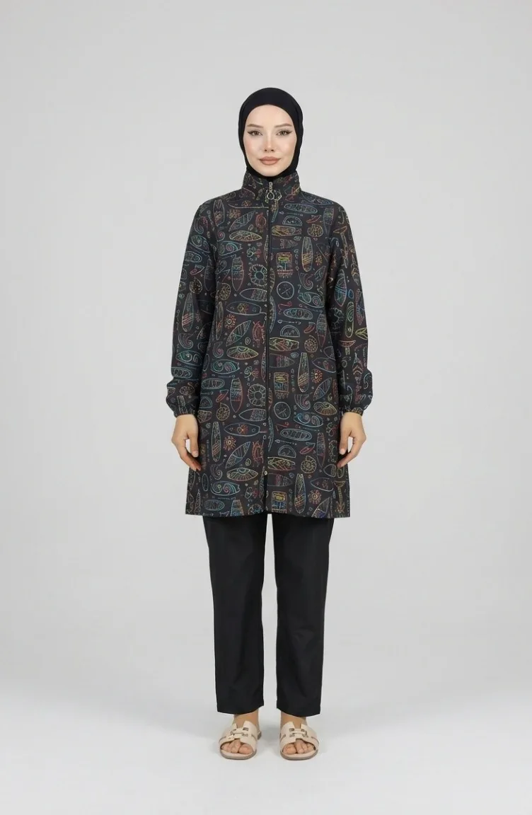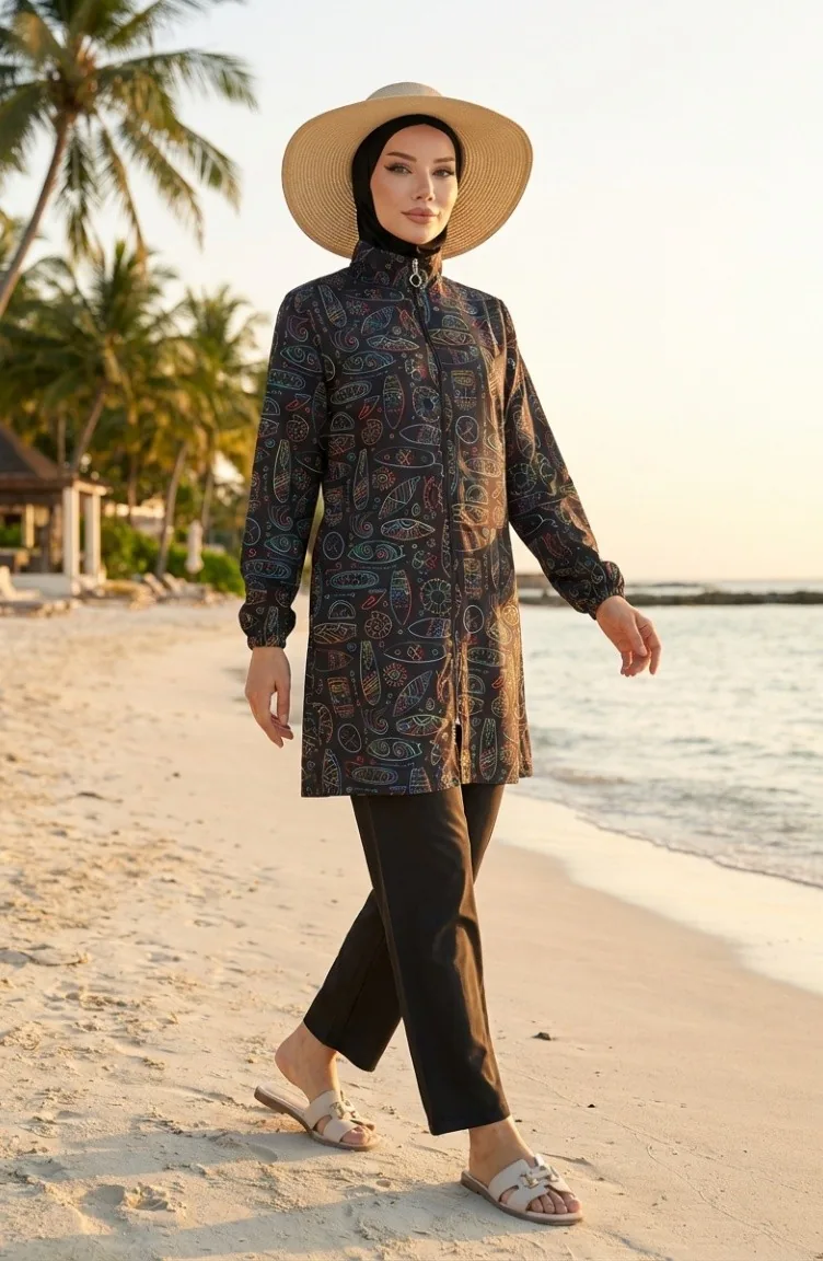 Yaz sezonunun enerjisini plajlara taşıyan Geometrik Desenli 3'lü Tesettür Mayo Takımı, modern tasarımıyla göz kamaştırıyor. %100 polyester kumaş yapısı sayesinde su itici özelliğe sahip olan bu takım, sudan çıktığınızda hızla kuruyarak konforunuzu en üst seviyeye çıkarır.Ürün İçeriği: Üst tunik, pantolon ve bone olmak üzere 3 parçadan oluşmaktadır.Kumaş Özelliği: Hafif yapılı polyester kumaş, hareket özgürlüğü sağlar ve vücuda yapışmaz.Tasarım: Dinamik geometrik desenler, modern muhafazakar giyim estetiğiyle birleşmiştir.Tam kapalı formuyla mahremiyetinizi korurken, nefes alabilen dokusu sayesinde sıcak yaz günlerinde ferah bir kullanım sunar. Denizde ve havuzda kullanım için ideal olan bu model, şıklığı ve fonksiyonelliği bir araya getiren bir yapıdadır. Şık bir plaj çantası ve güneş gözlükleriyle kombinleyerek stilinizi tamamlayabilirsiniz.