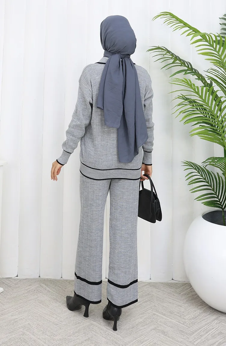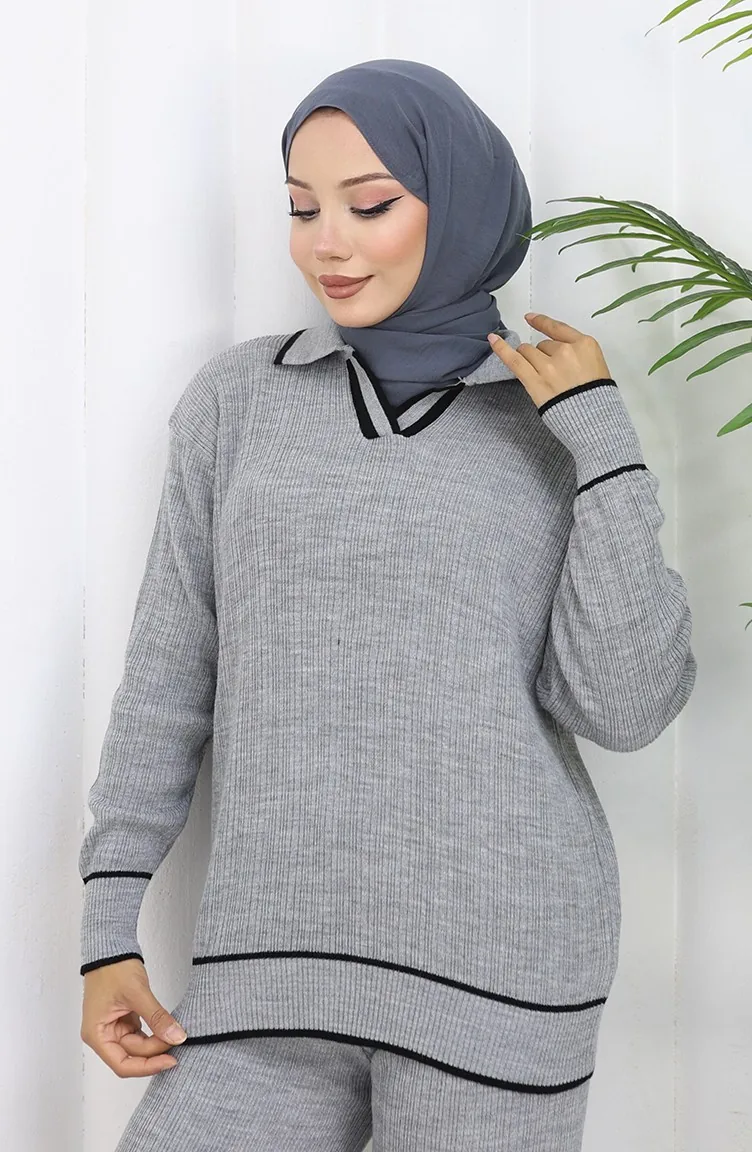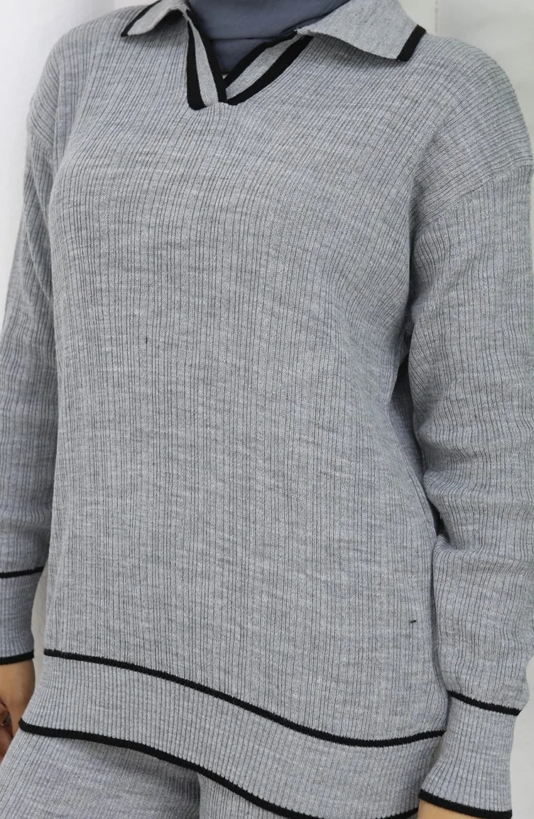 Triko Fitilli Kazak Pantolon İkili Takım 0010-02 Gri