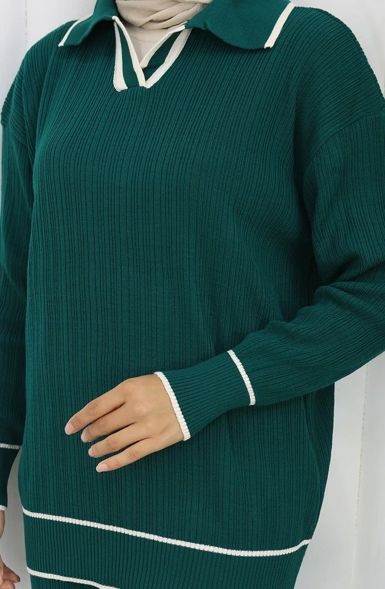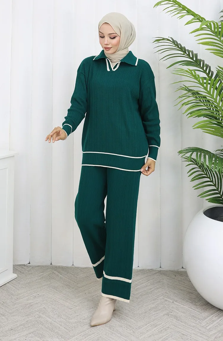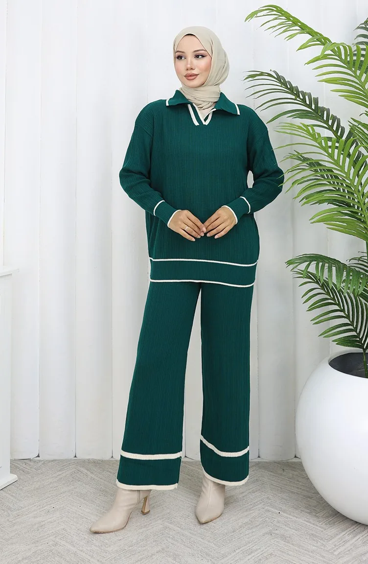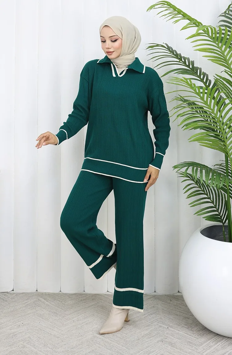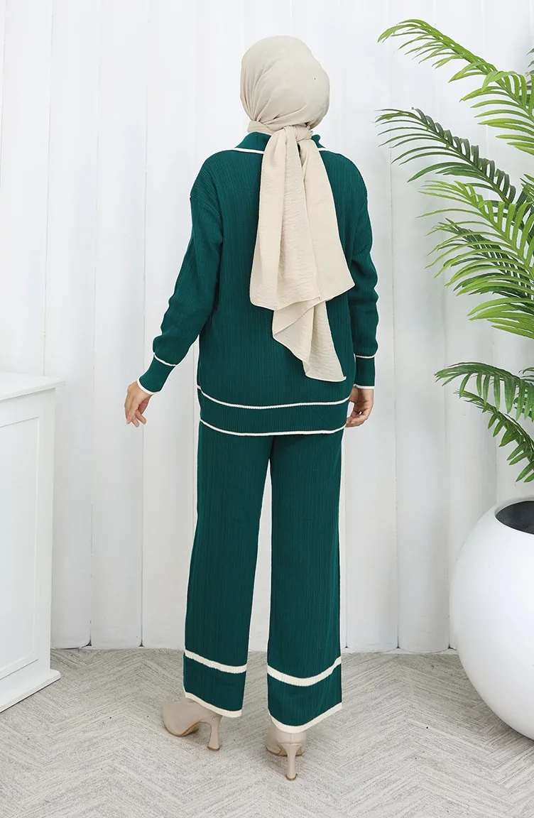 Triko Fitilli Kazak Pantolon İkili Takım 0010-05 Petrol