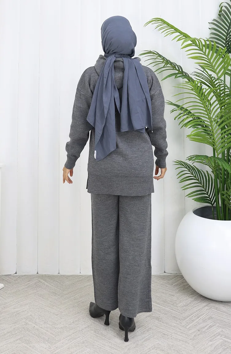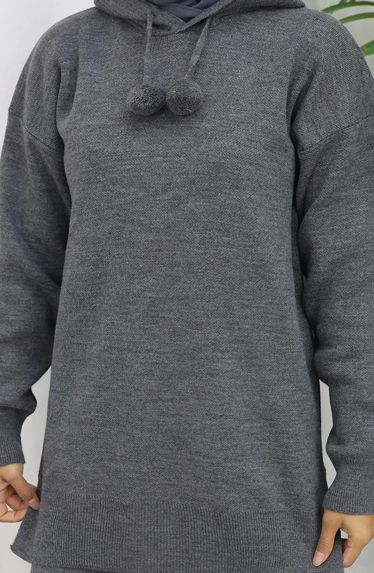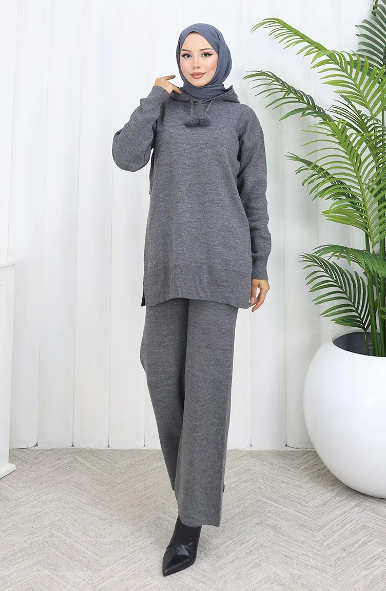 Triko Kapüşonlu Tunik Pantolon İkili Takım 1079-04 Gri