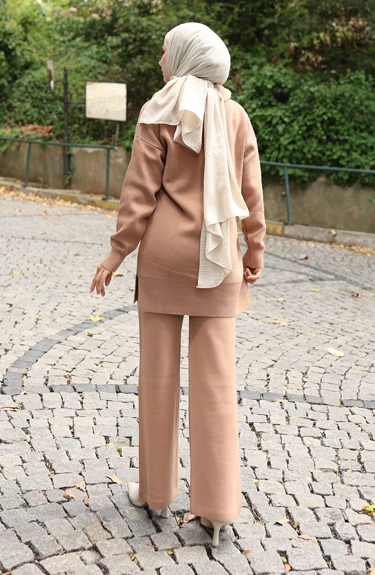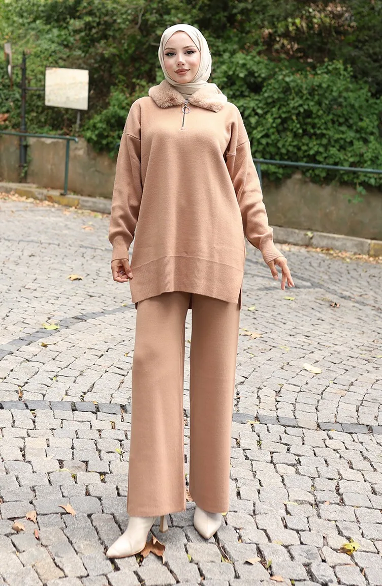 Triko Kürk Yakalı Tunik Pantolon İkili Takım 1059-02 Sütlü kahve
