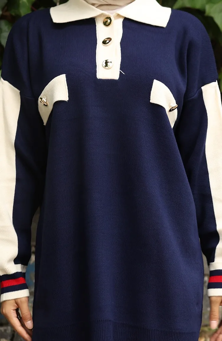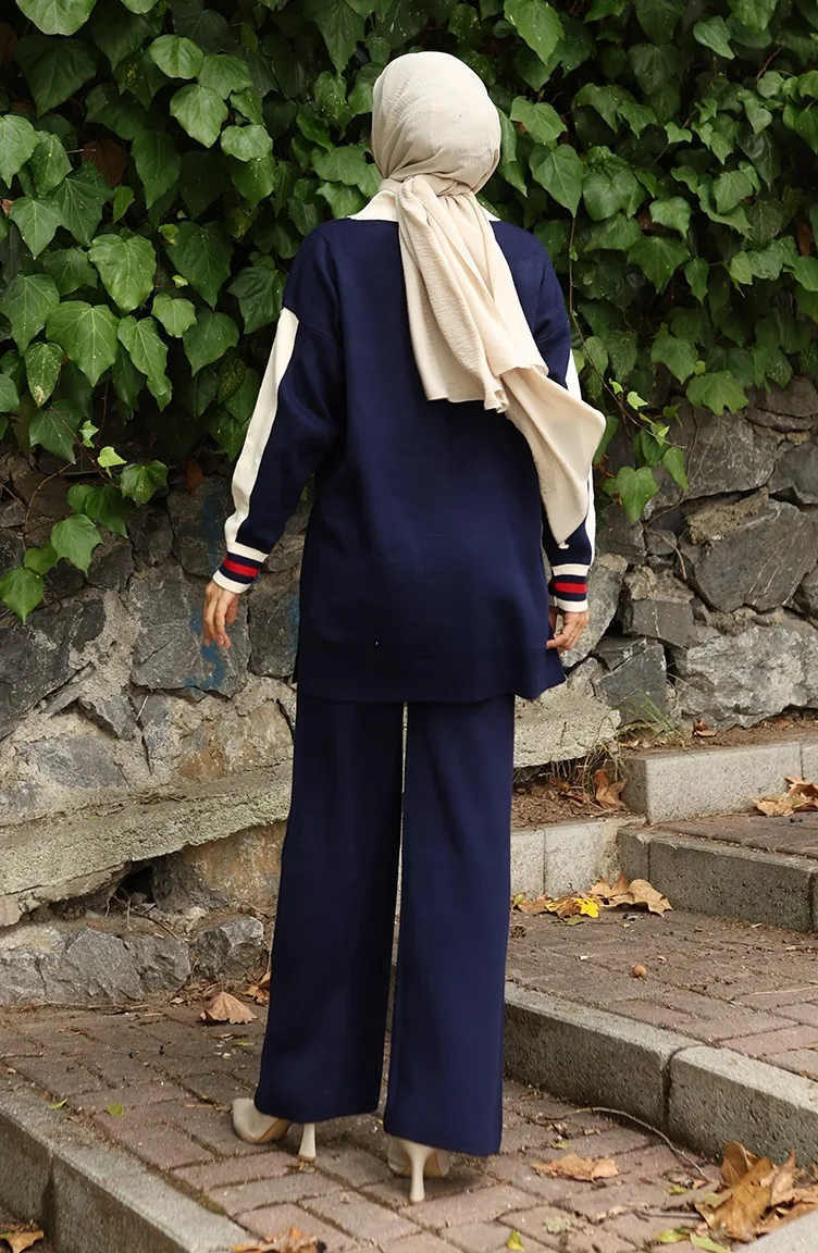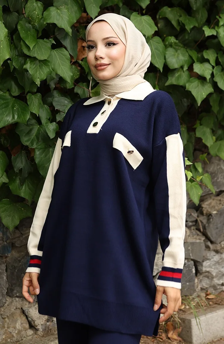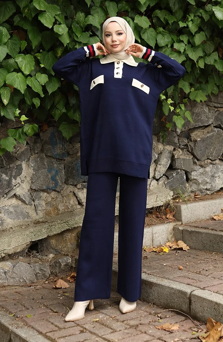 Triko Polo Yaka Tunik Pantolon İkili Takım 1048-01 Lacivert