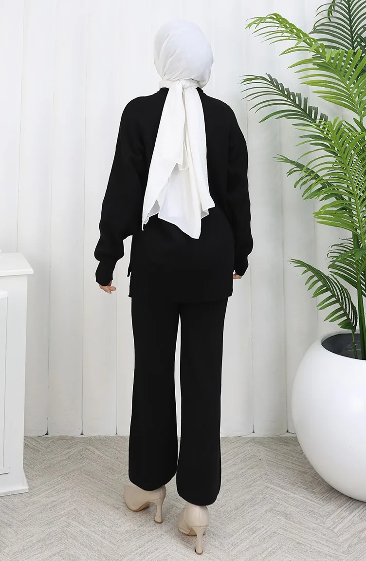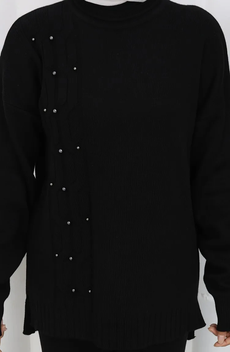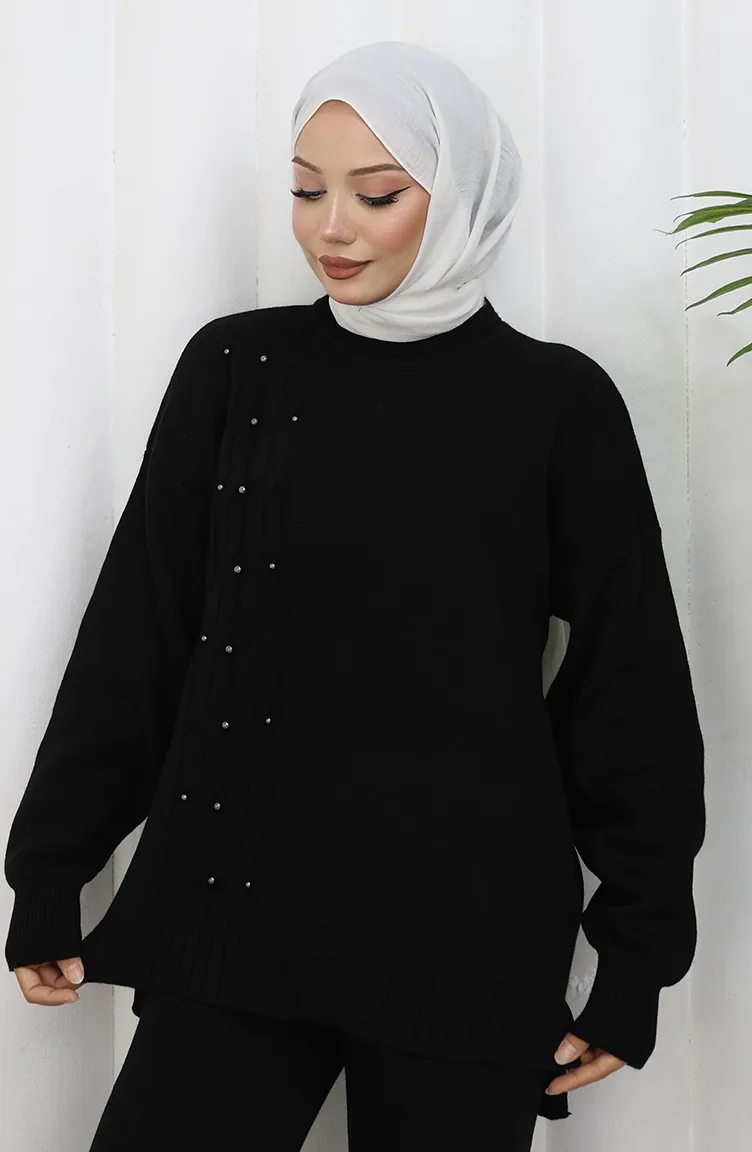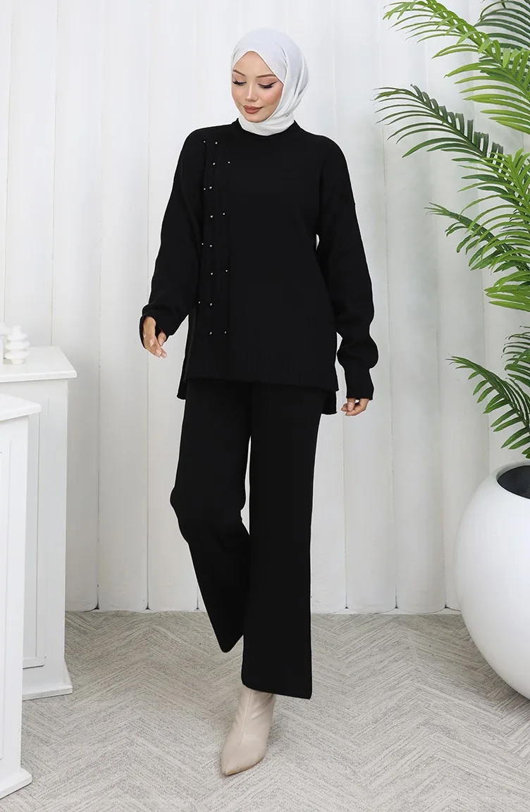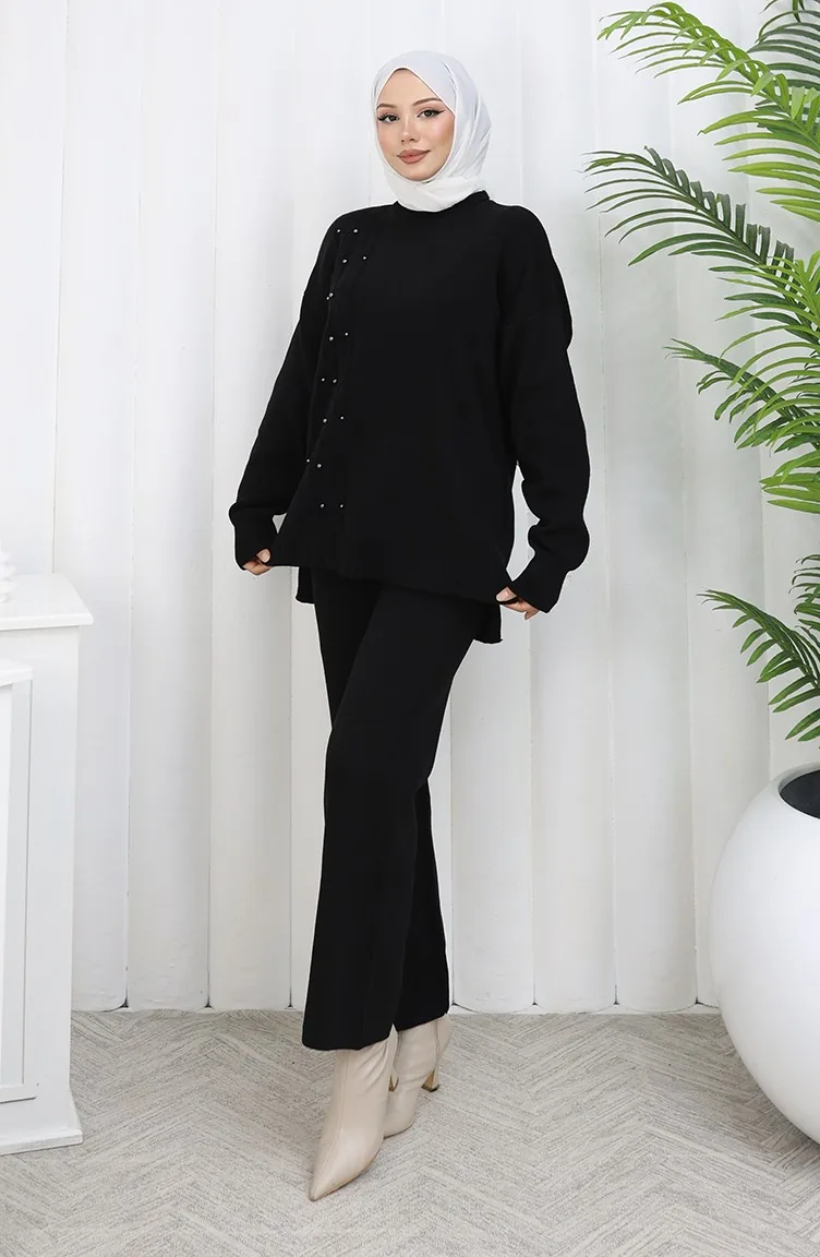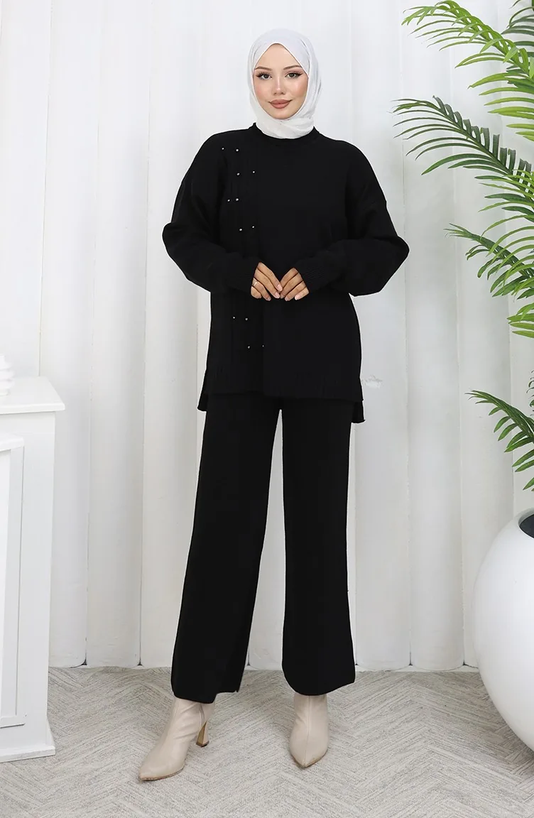 Triko Taş Detaylı Kazak Pantolon İkili Takım 0014-07 Siyah