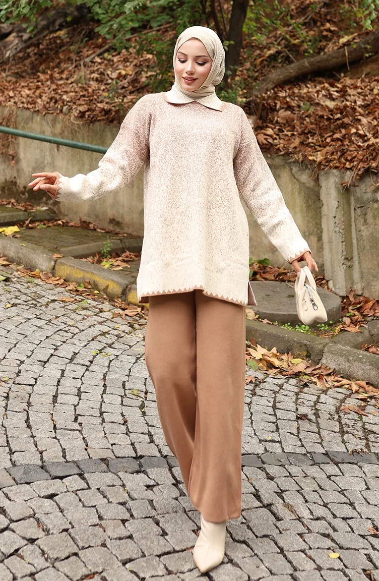Triko Tunik Pantolon İkili Takım 1123-01 Sütlü kahve
