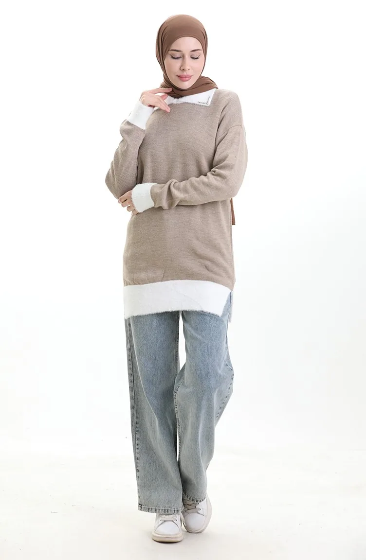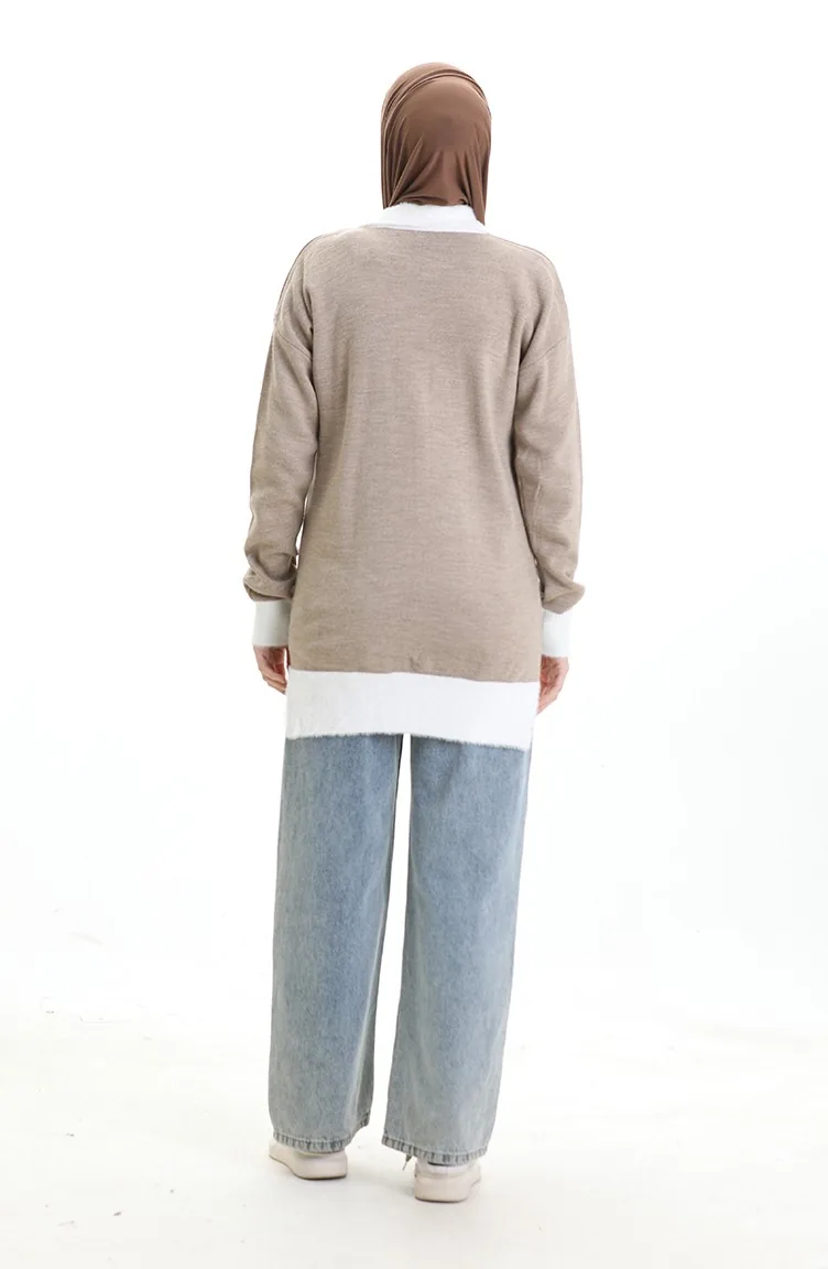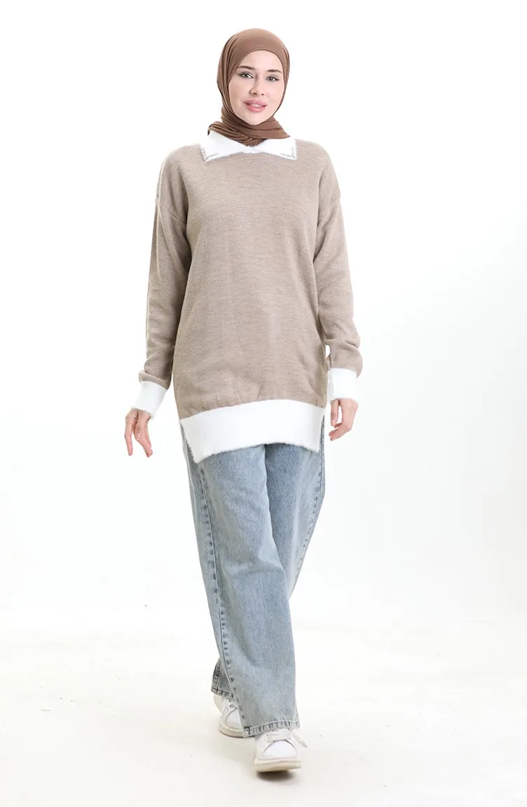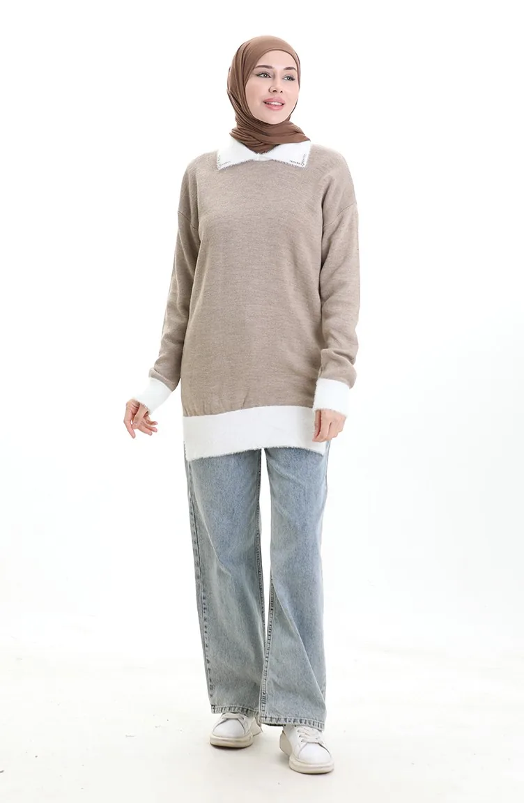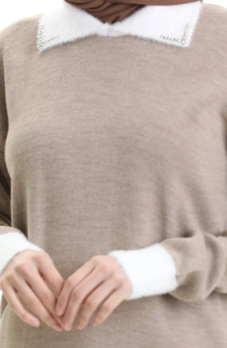 Triko Boncuk Detaylı Tunik 3002-02 Vizon