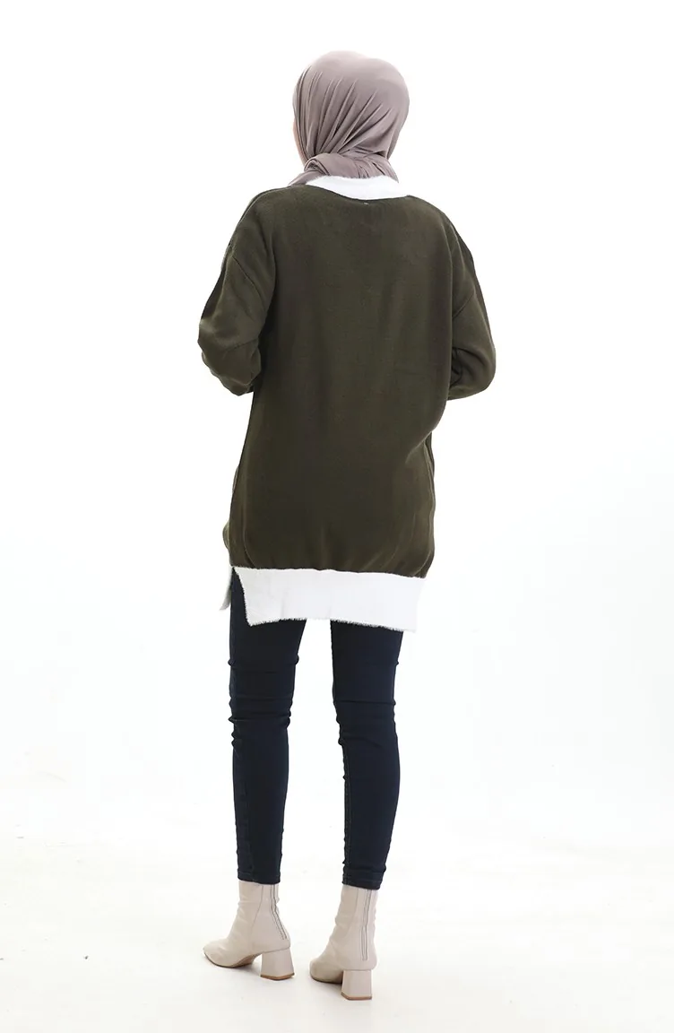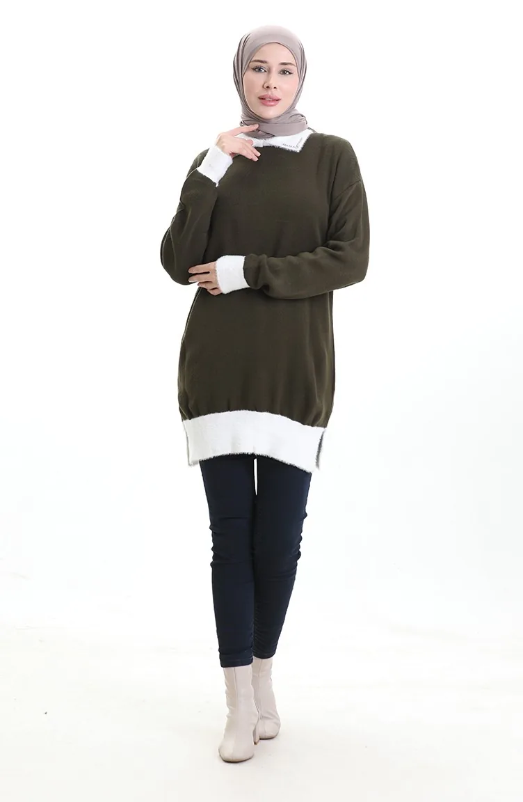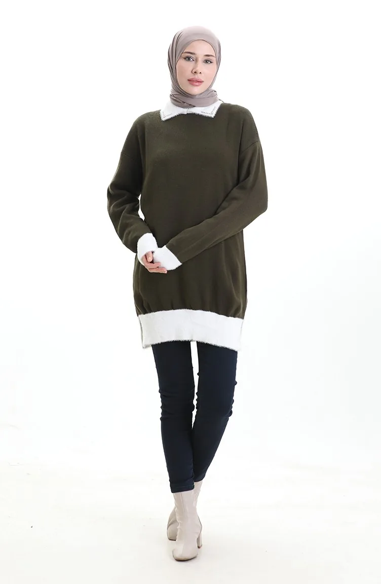 Triko Boncuk Detaylı Tunik 3002-09 Haki