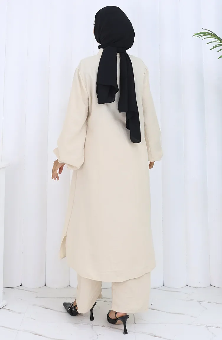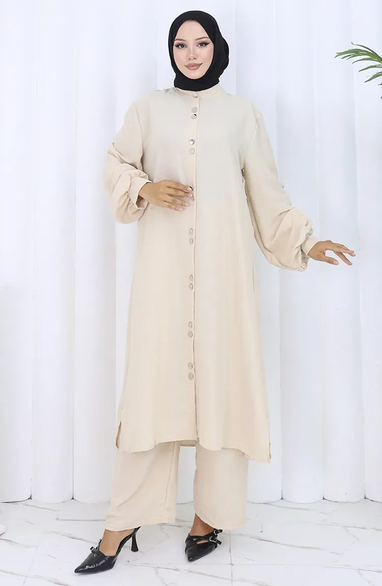 Boydan Düğmeli Tunik Pantolon İkili Takım 2114-02 Vizon