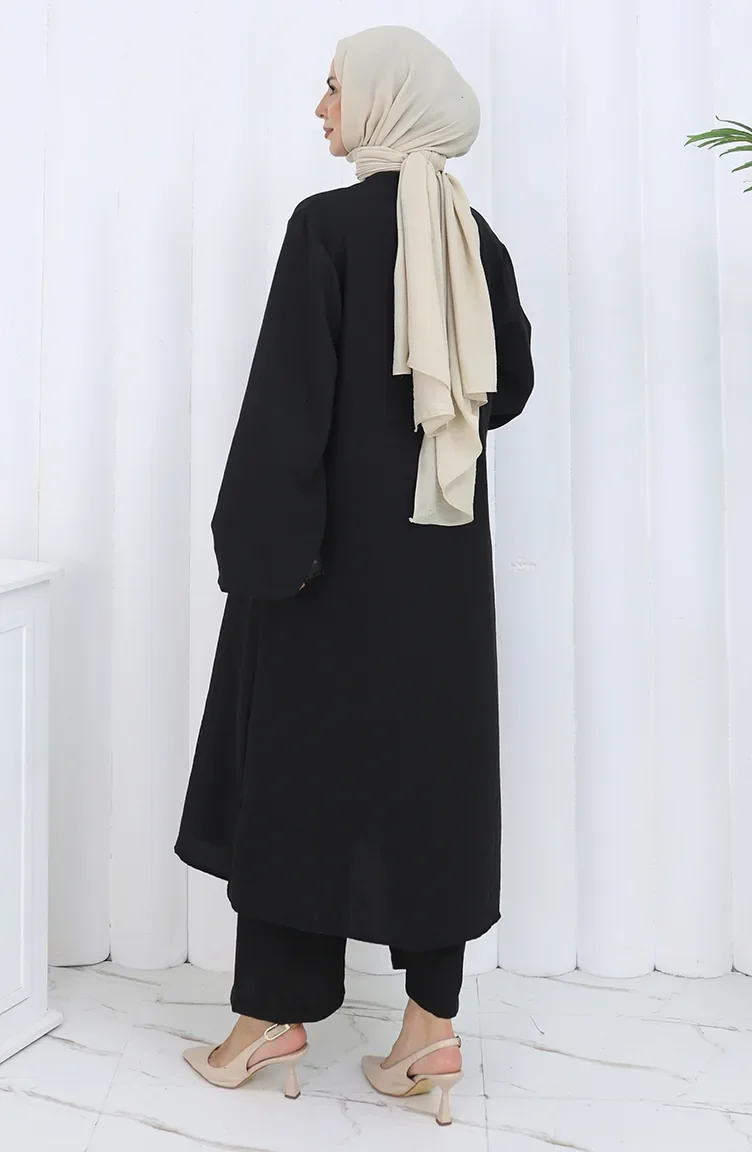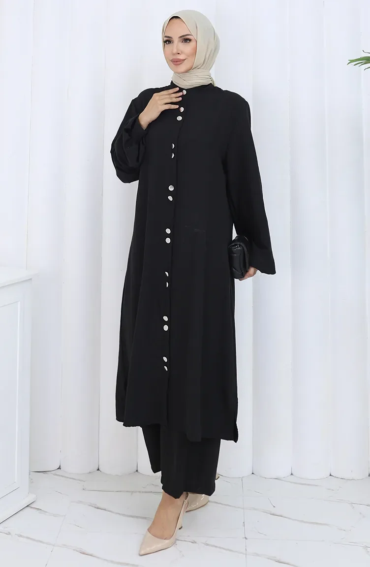 Boydan Düğmeli Tunik Pantolon İkili Takım 2114-05 Siyah