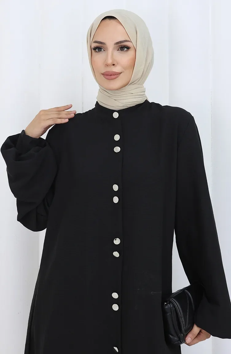Siyah renktedir. Pamuk dokuma kumaş. Sade. Düğmeli. Hakim yaka detayı ile kullanışlı modeldir. 4 Mevsim tercih edebilirsiniz. Büyük beden seçeneği mevcuttur.