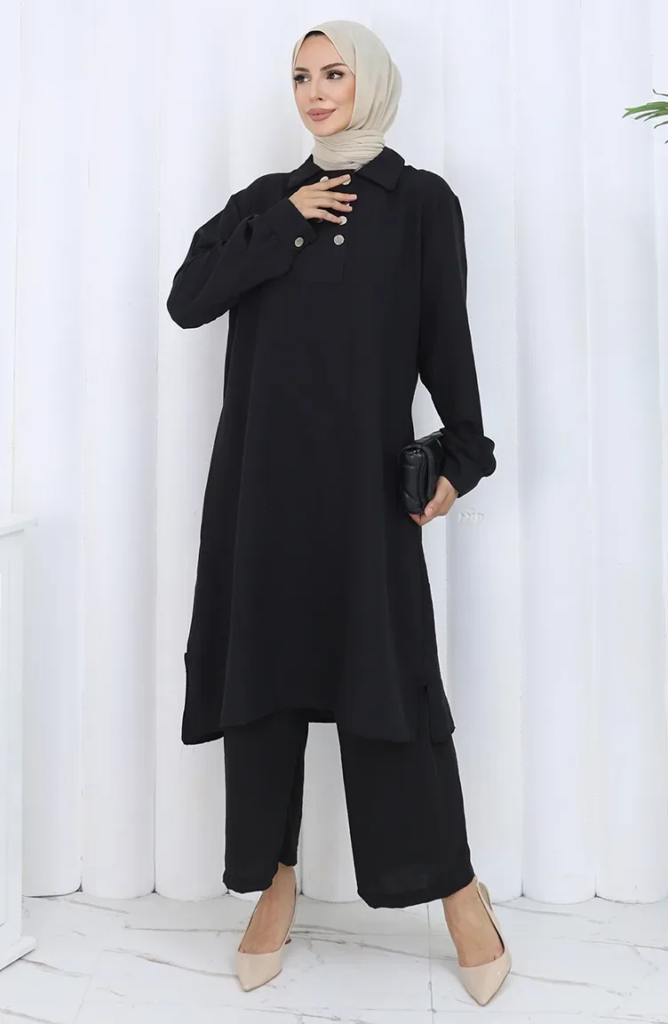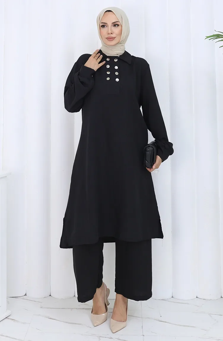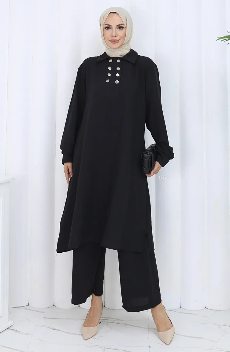 Çift Düğmeli Tunik Pantolon İkili Takım 2118-01 Siyah