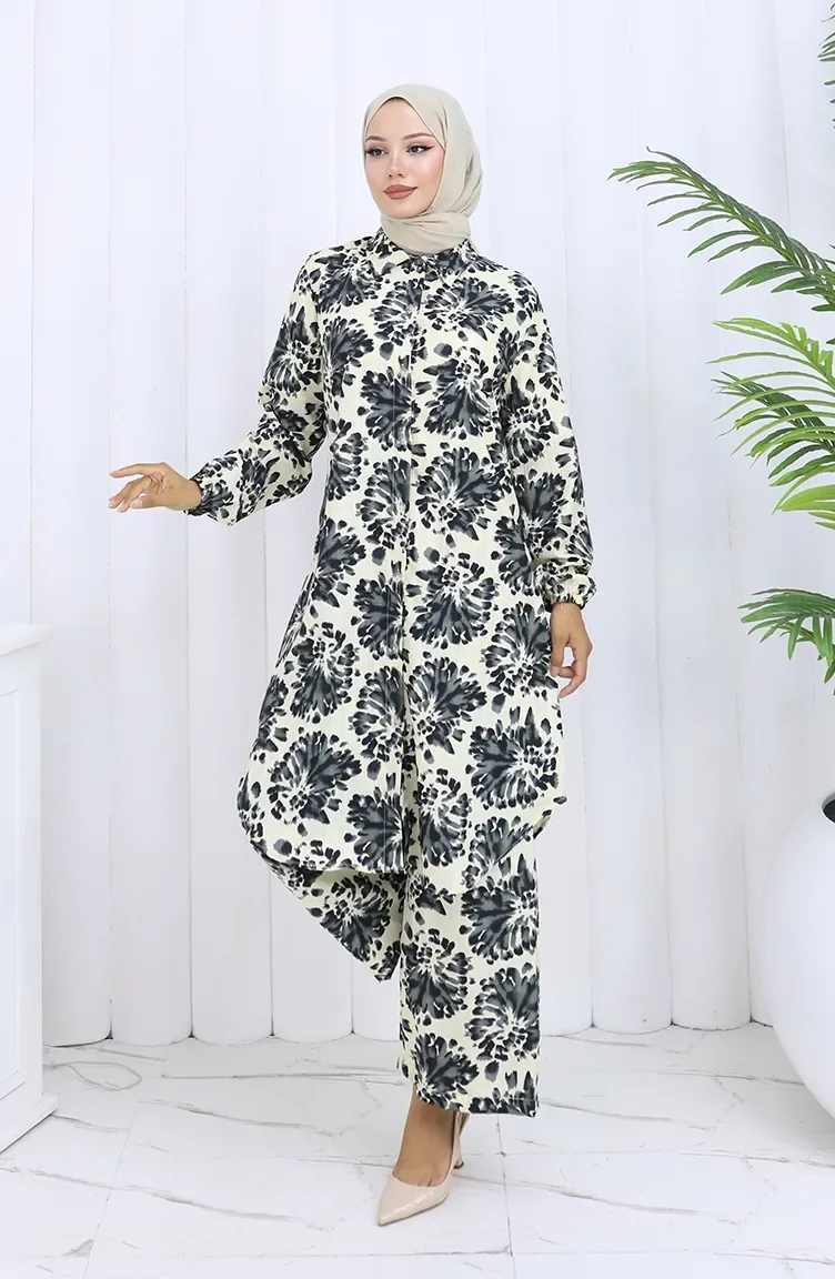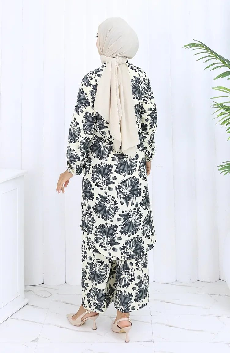 Desenli Tunik Pantolon İkili Takım 0126-03 Siyah