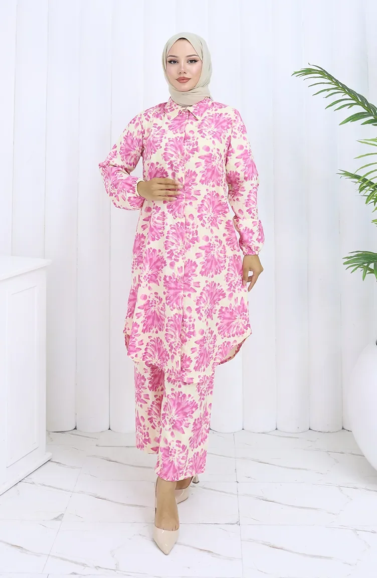 Desenli Tunik Pantolon İkili Takım 0126-04 Pembe