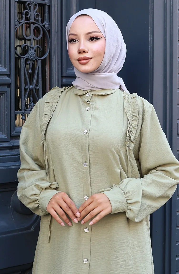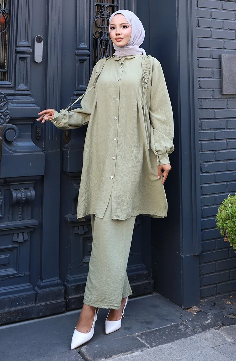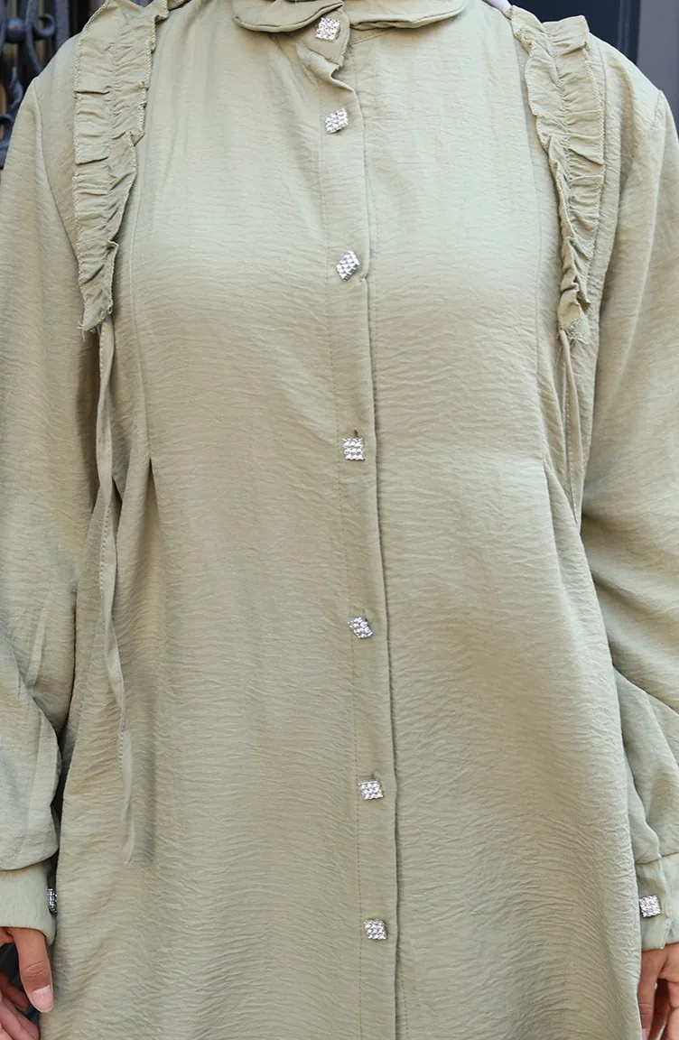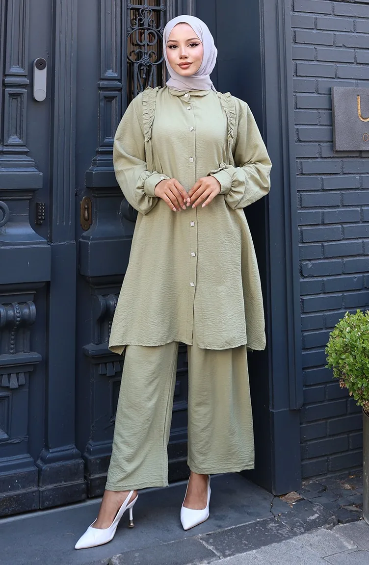 Önü Fırfırlı Tunik Pntolon İkili Takım 2128-07 Zeytin Yeşili