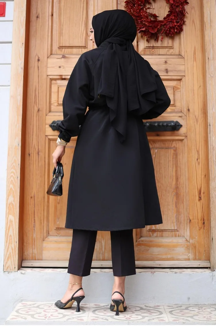 Siyah renktedir. Polyester kumaş. Sade. Kışlık. Büyük beden seçeneği mevcuttur.